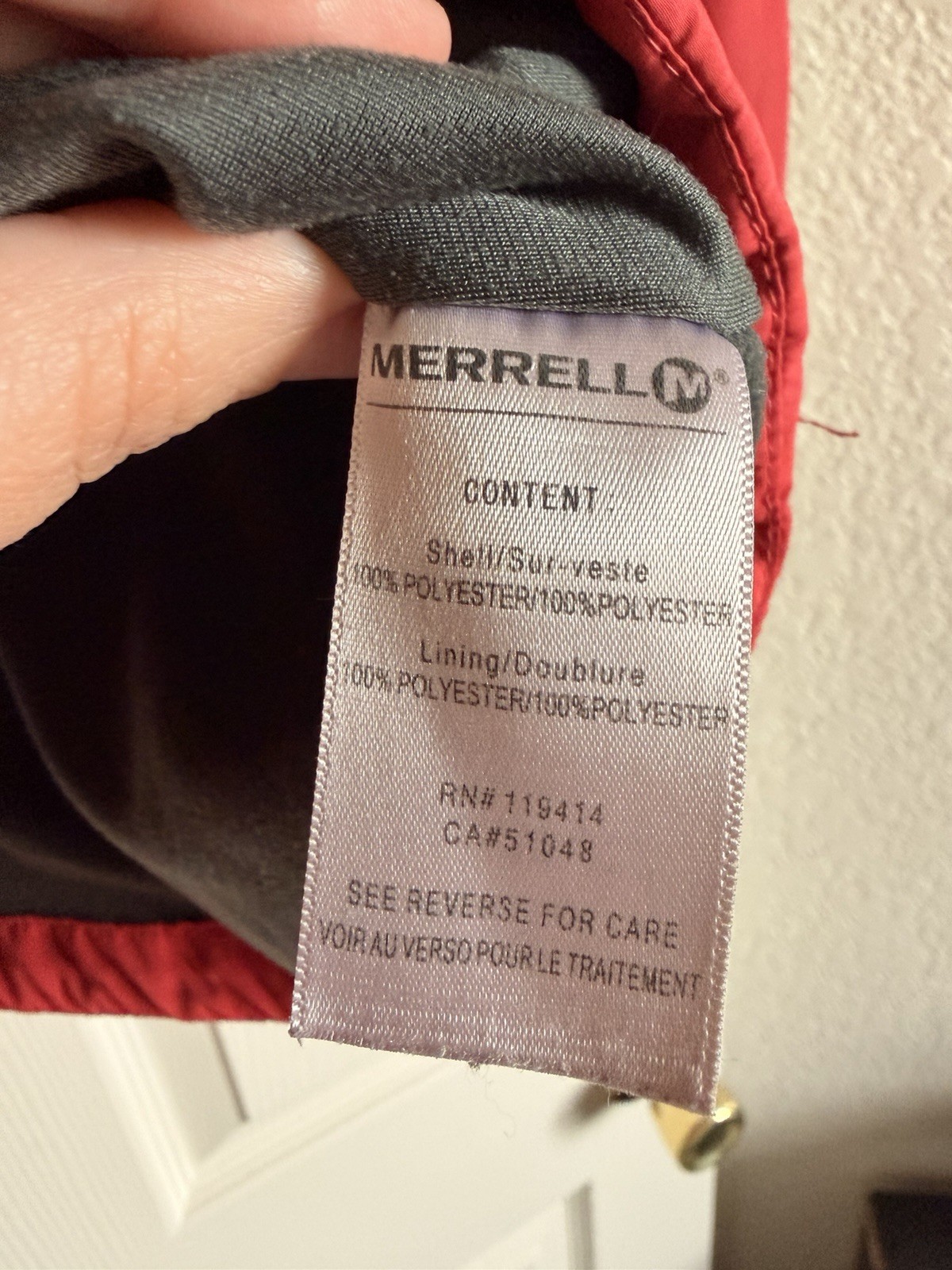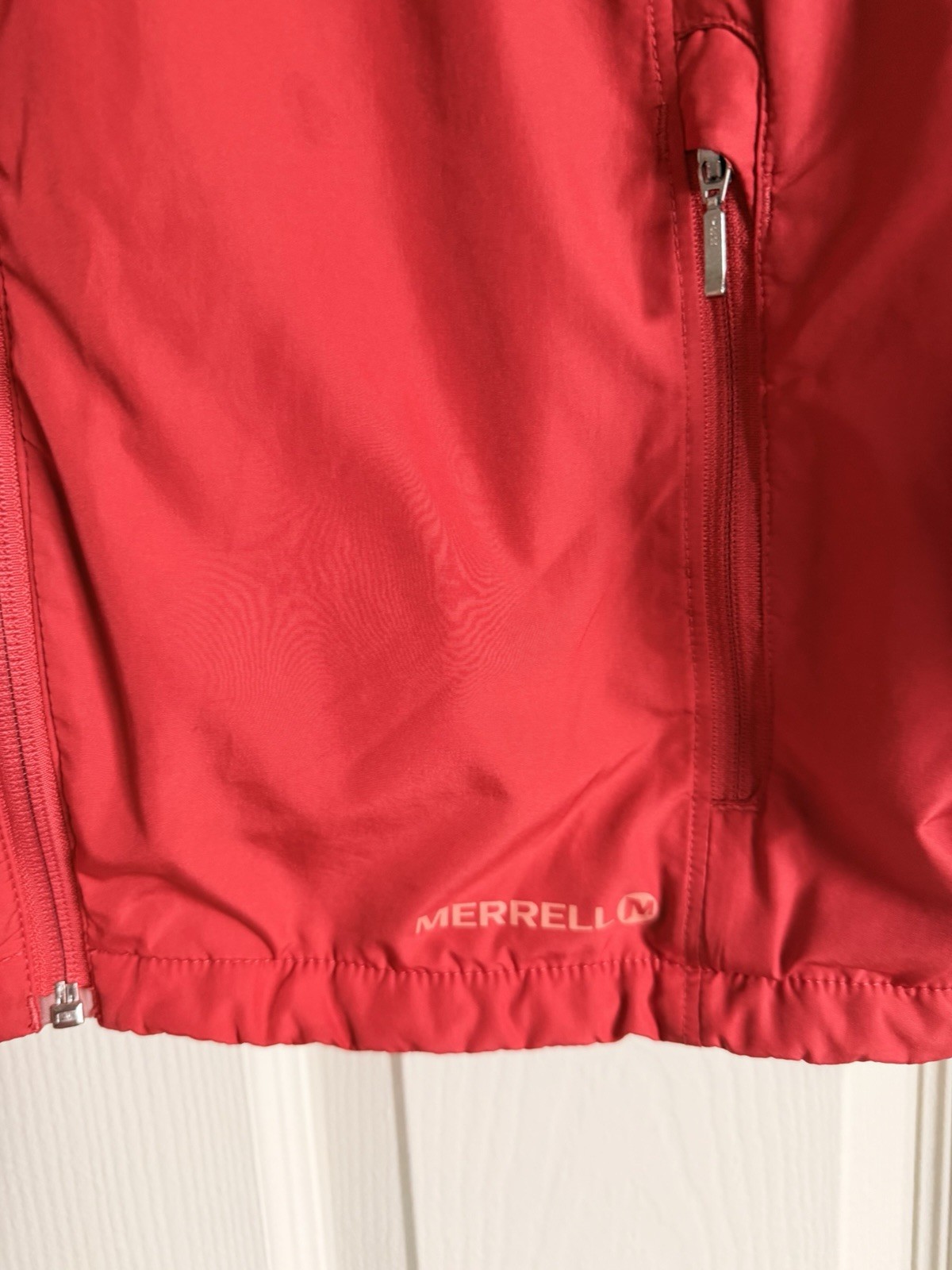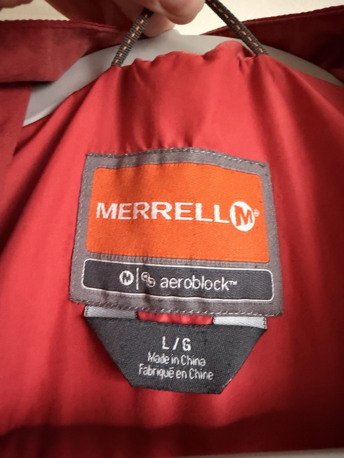 как выглядит Merrell Womens Large Packable Aeroblock Jacket Highly Wind Resistant EUC Red фото