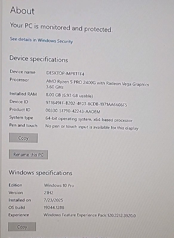 HP EliteDesk 705 G4 SFF Ryzen 5 Pro-2400G - 3.60GHz- 8GB RAM - 256GB - Win10Pro