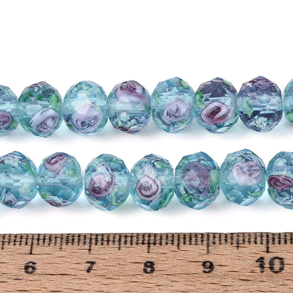 как выглядит 80pcs Flower Faceted Rpund Lampwork Glass Beads Light Blue for DIY Crafts фото