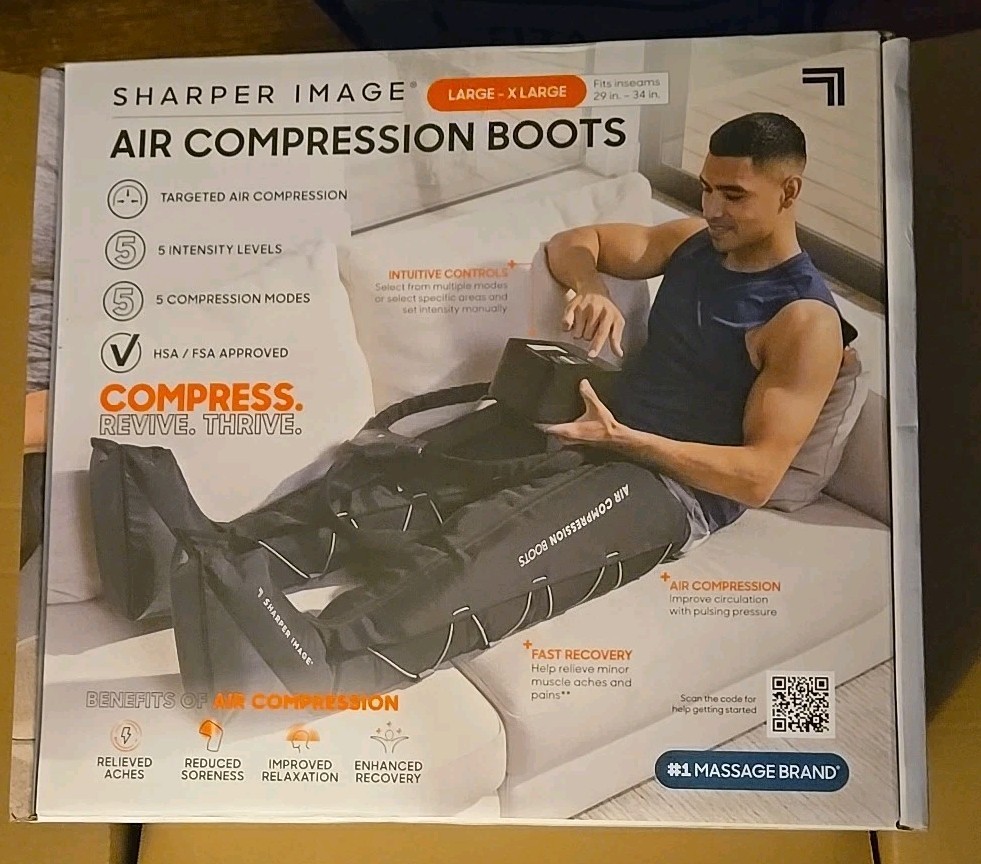 SHARPER IMAGE AIR COMPRESSION BOOTS LARGE/ X-LARGE SIZE Inseam 29-34 BLACK