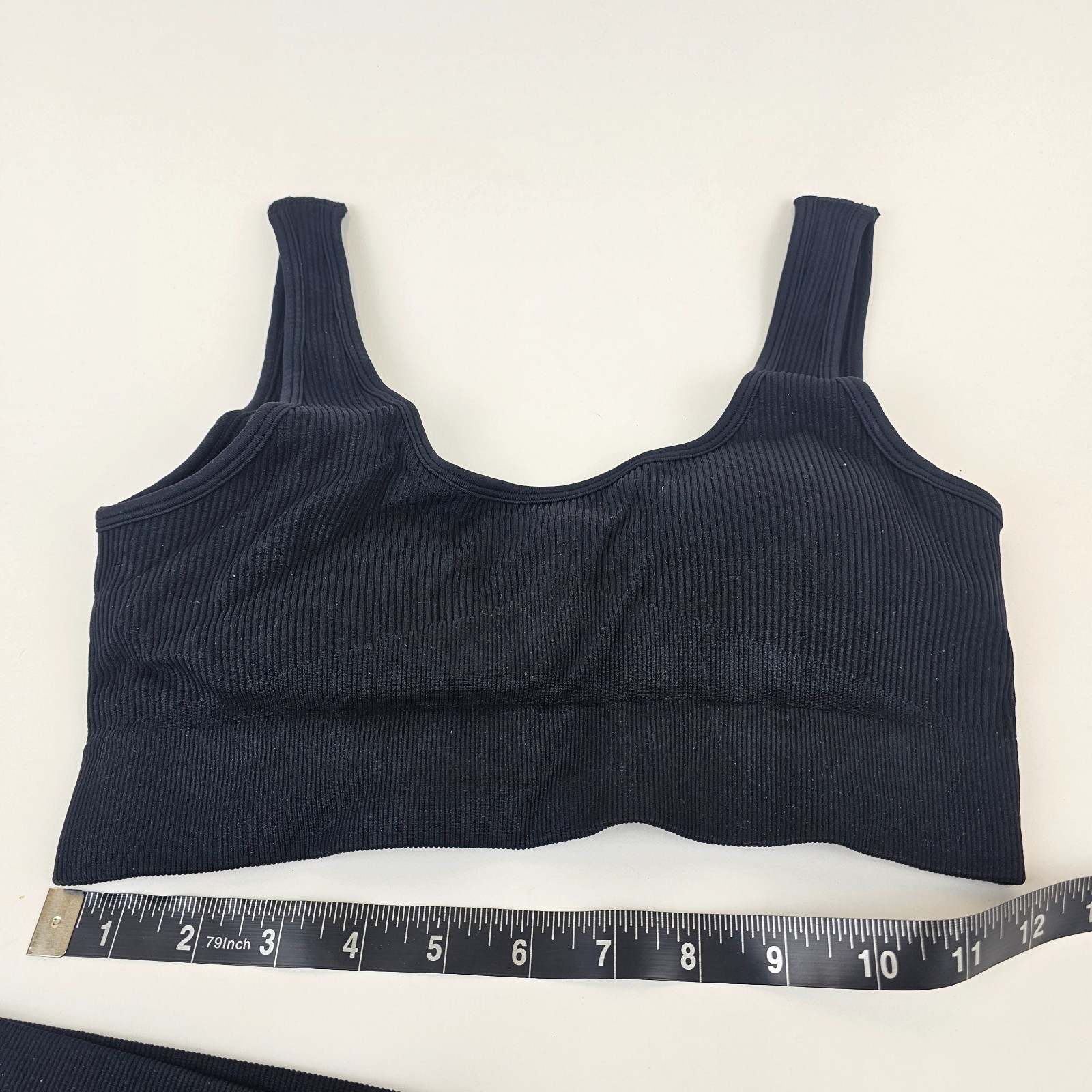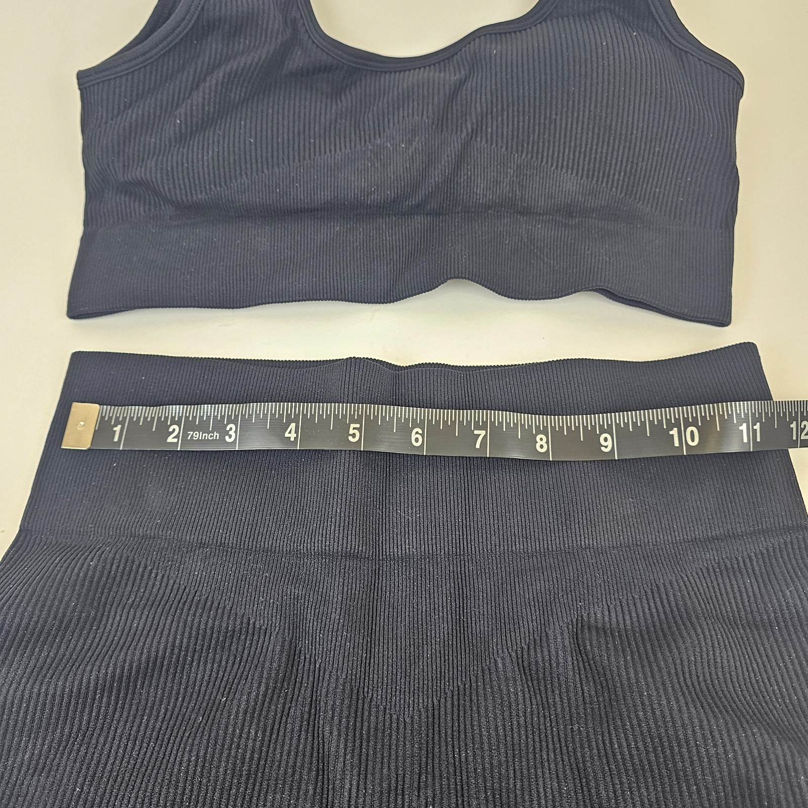 как выглядит Womens Large Black Workout Set 2 Piece Ribbed Crop Tank High Waist Shorts Outfi фото