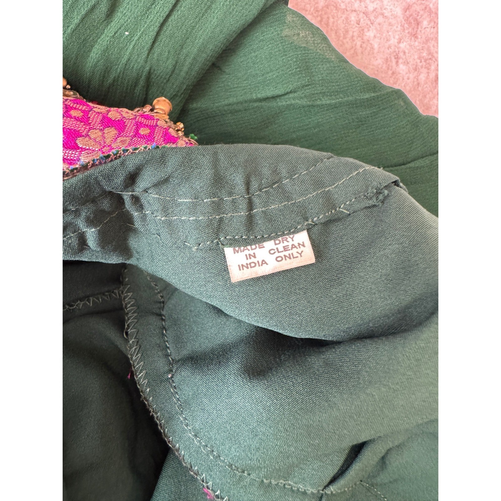 как выглядит Embroidered Beaded Indian Dress Green Pink Heavy Formal Occasion wear EUC фото