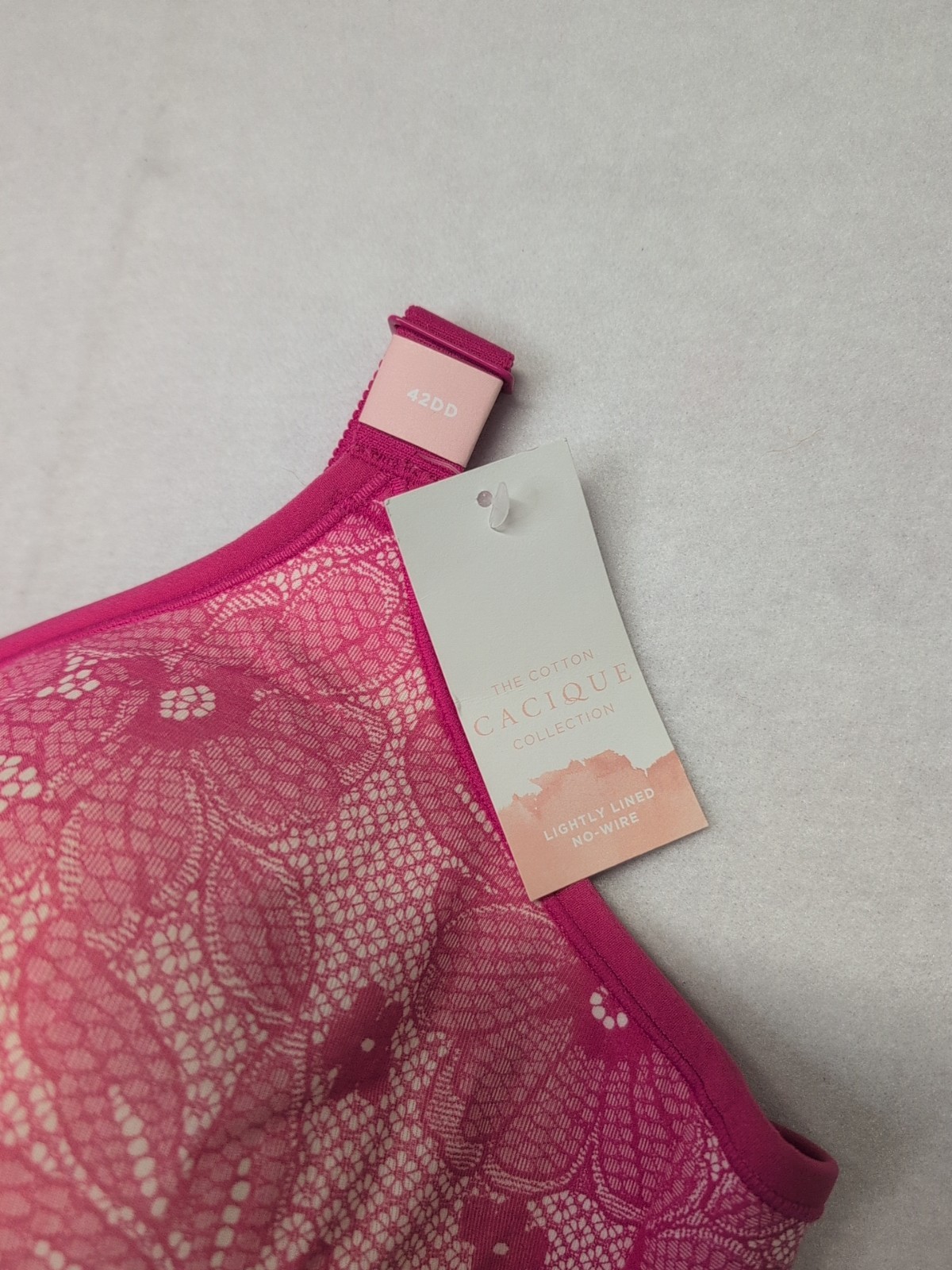 как выглядит CACIQUE By LANE BRYANT 42DD Lightly Lined No Wire Bra Pink Lace Print New фото