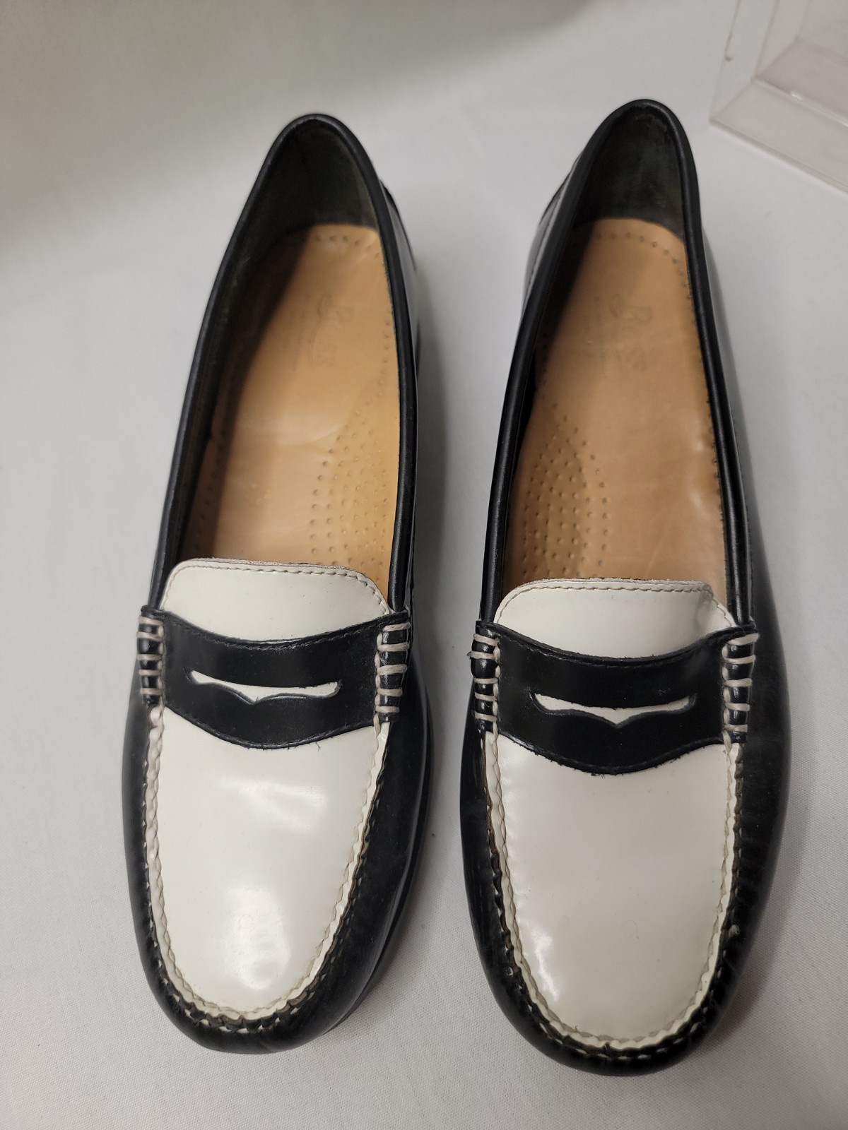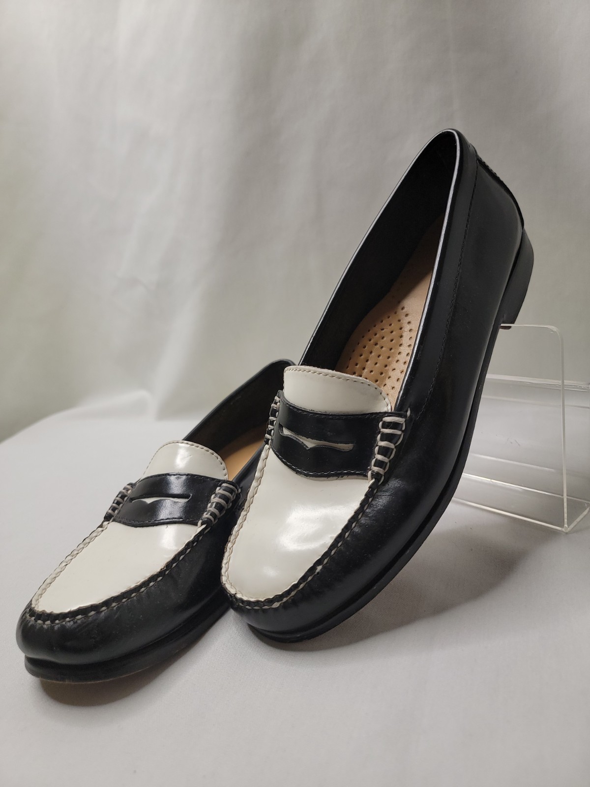 GH Bass Ziggy Weejuns Black White Women's Leather Penny Loafers Size 8