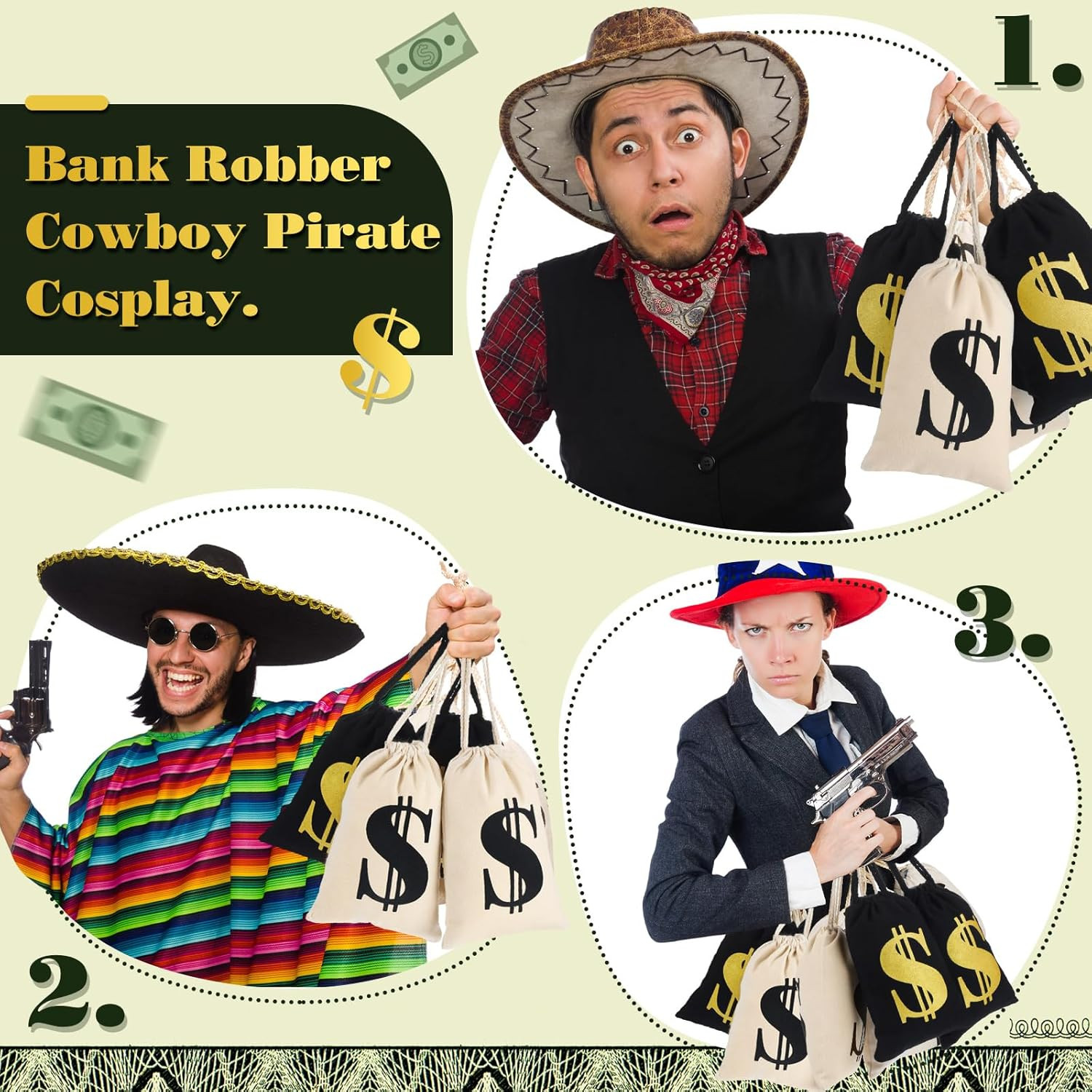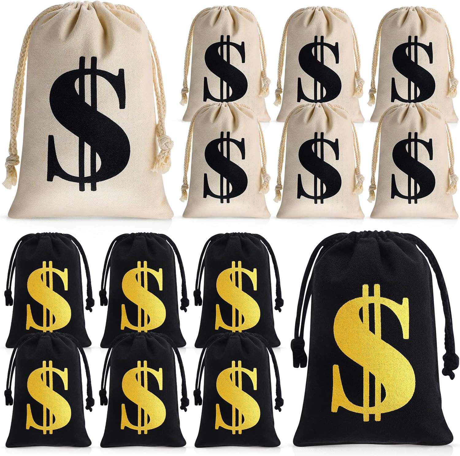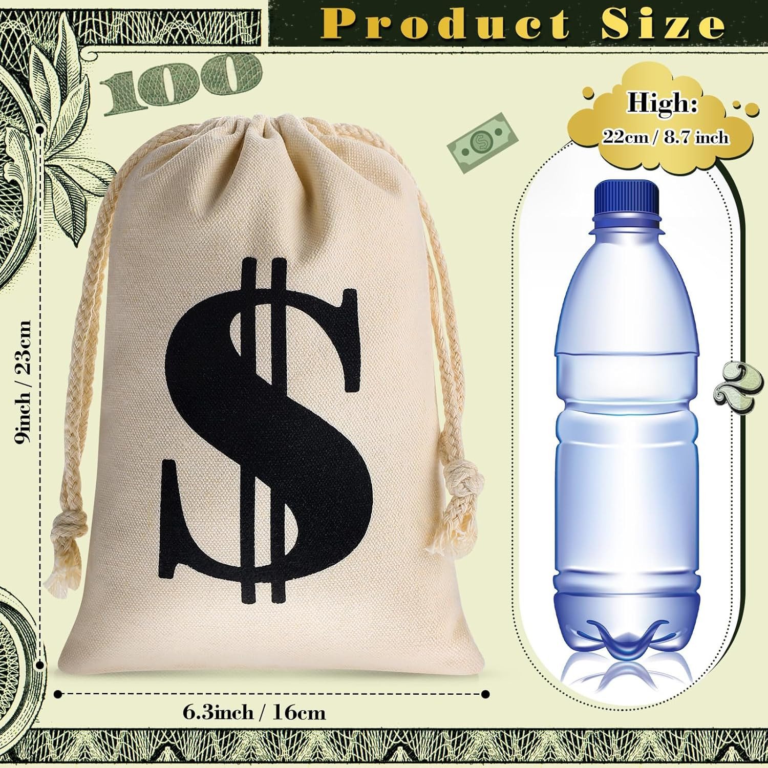 • 24 Pcs 9 X 6.3 Inches Canvas Money Bag with Drawstring Closure Costume Money Bag