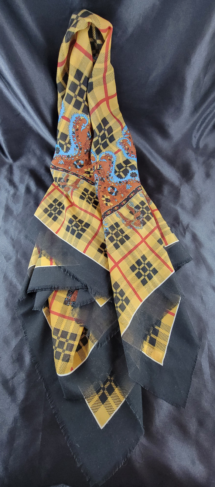 Scarf Italian Made Italy Black Tan Light Blue Brown Flower Pattern Vintage