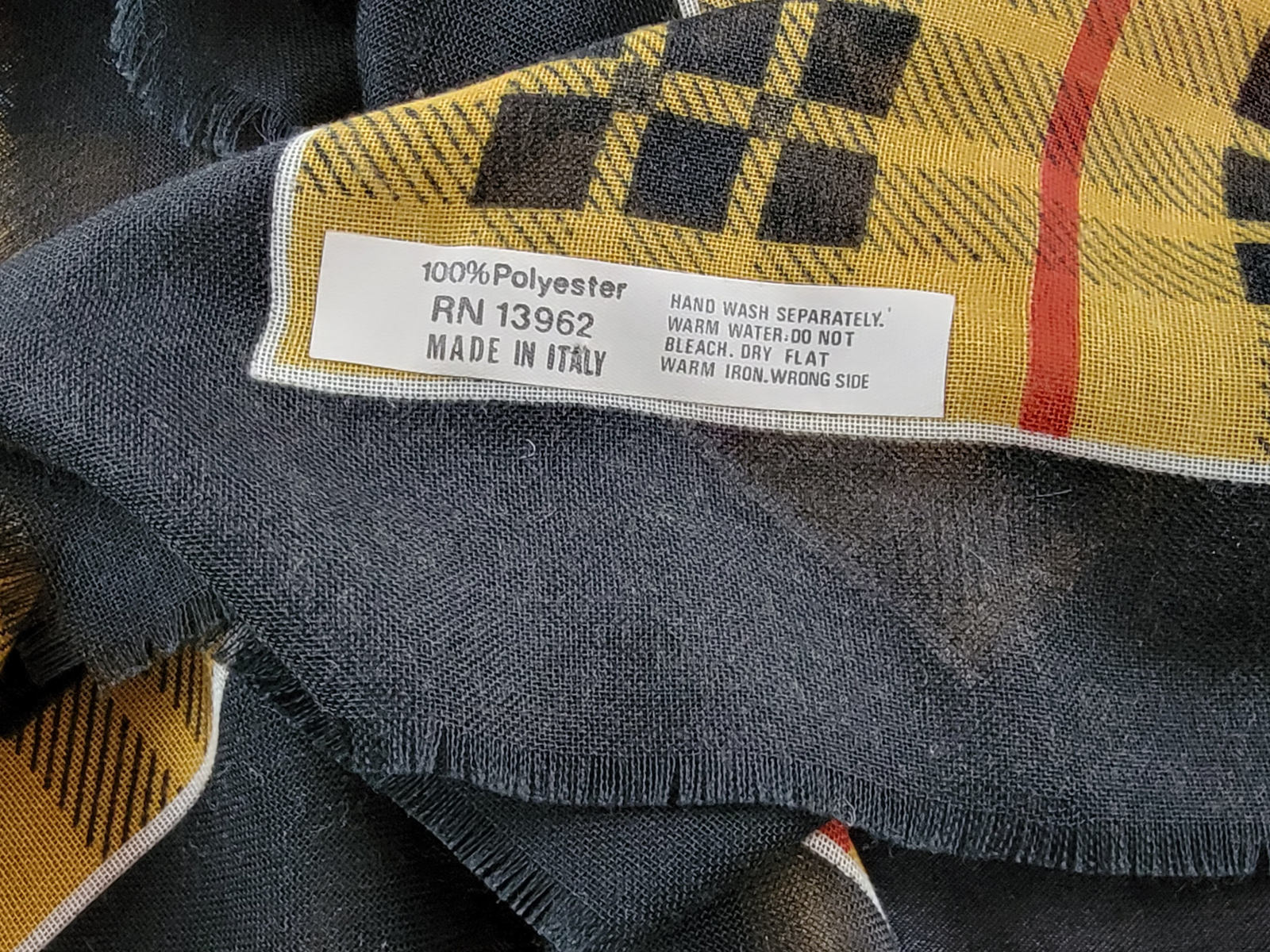 как выглядит Scarf Italian Made Italy Black Tan Light Blue Brown Flower Pattern Vintage фото