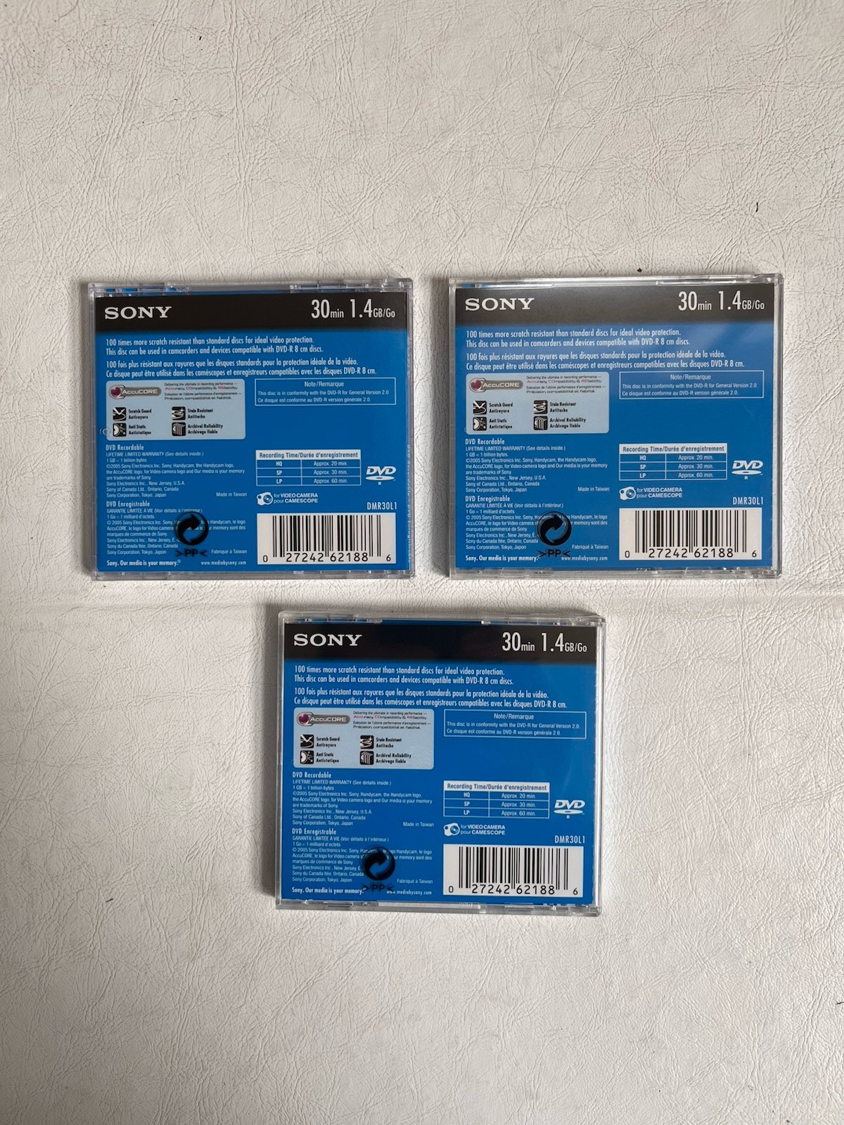 Sony Handycam DVD-R 30 Min 1.4GB Recordable Disc 3 PACK New Sealed