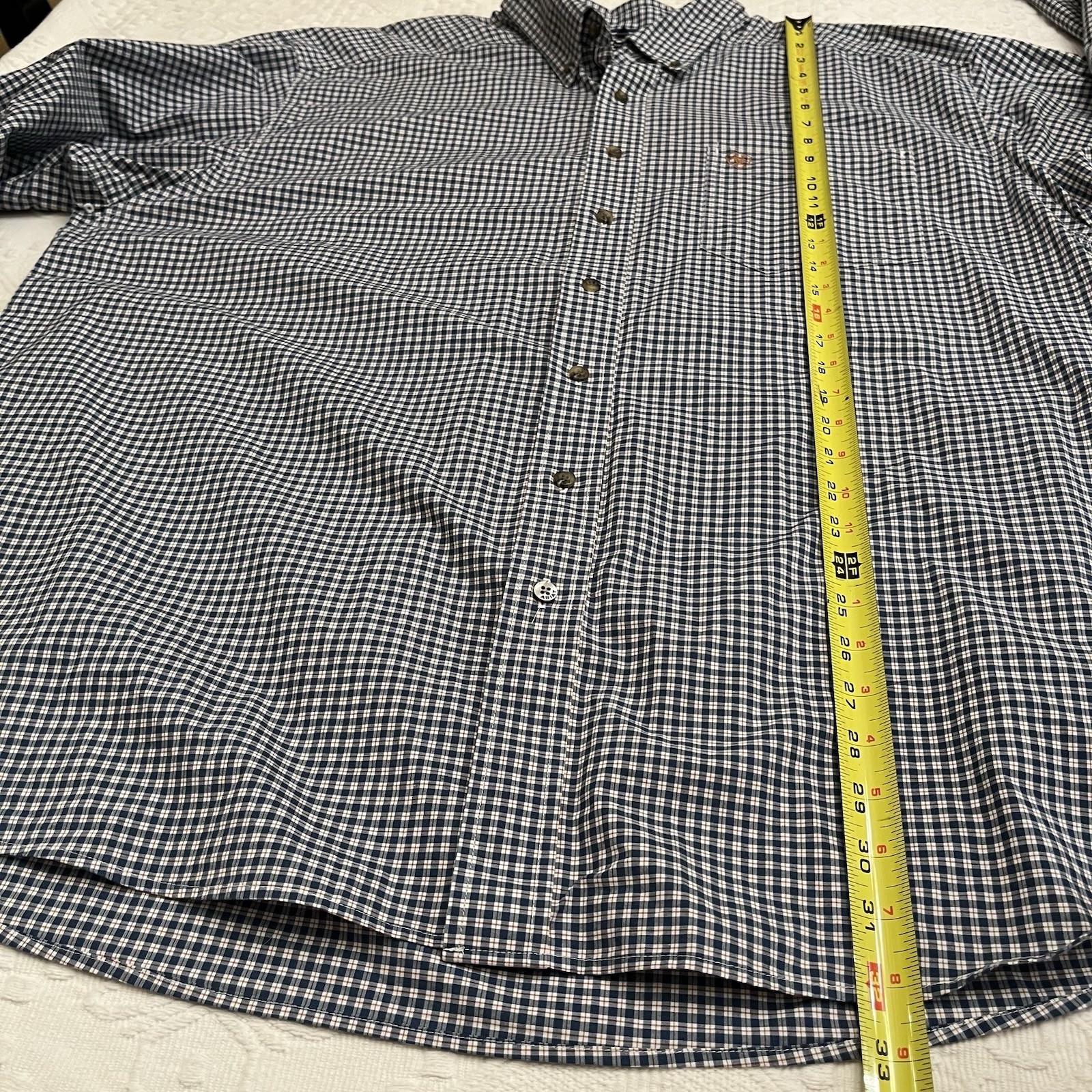 как выглядит Ariat Pro Series Plaid Check Men s XXL Button Shirt Navy Long Sleeve Vented Logo фото