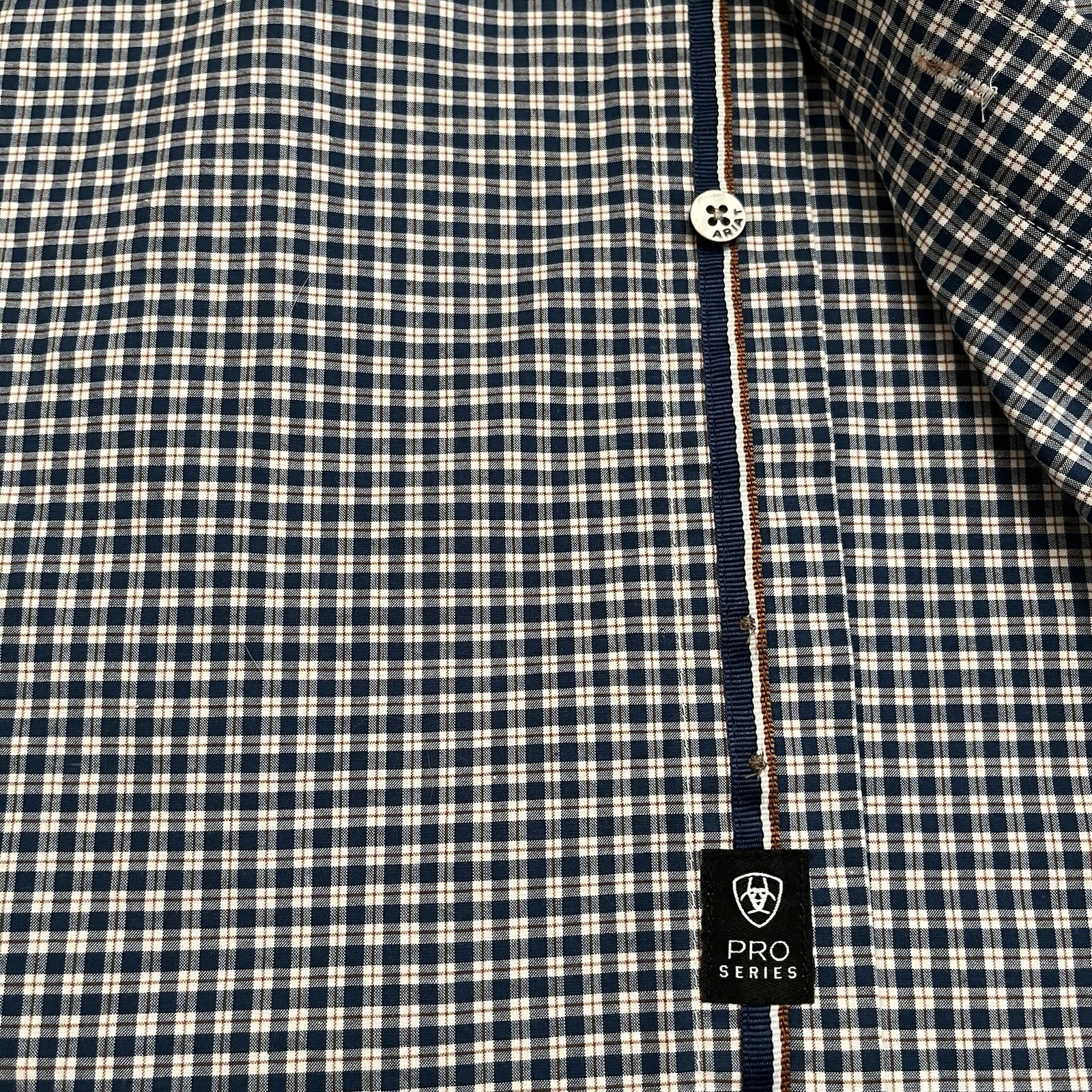 Ariat Pro Series Plaid Check Men s XXL Button Shirt Navy Long Sleeve Vented Logo