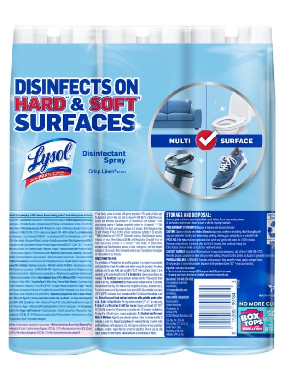 как выглядит 3 PACK Lysol Disinfectant Spray, Crisp Linen Scent 19 oz. FREE AND FAST SHIPPING фото