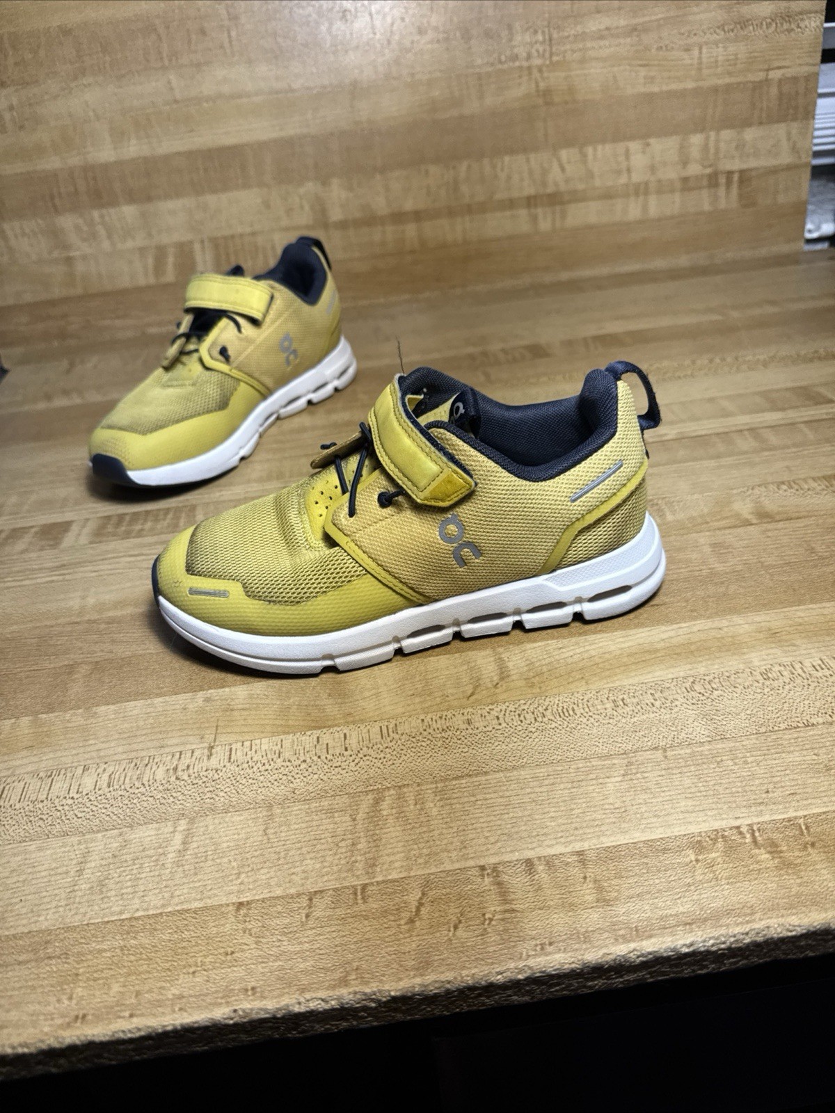 как выглядит On Cloud Play Shoes Youth Size 1 Mesh Athletic Running Kids Yellow Sneakers фото