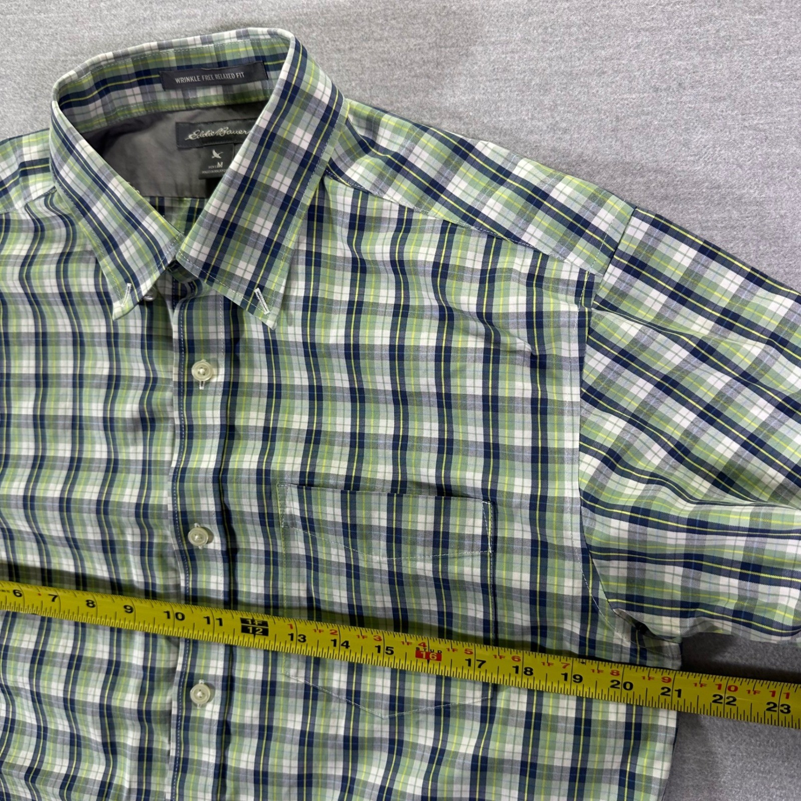 как выглядит Eddie Bauer Plaid Button Down Shirt Mens Medium Green Short Sleeve Wrinkle Free фото