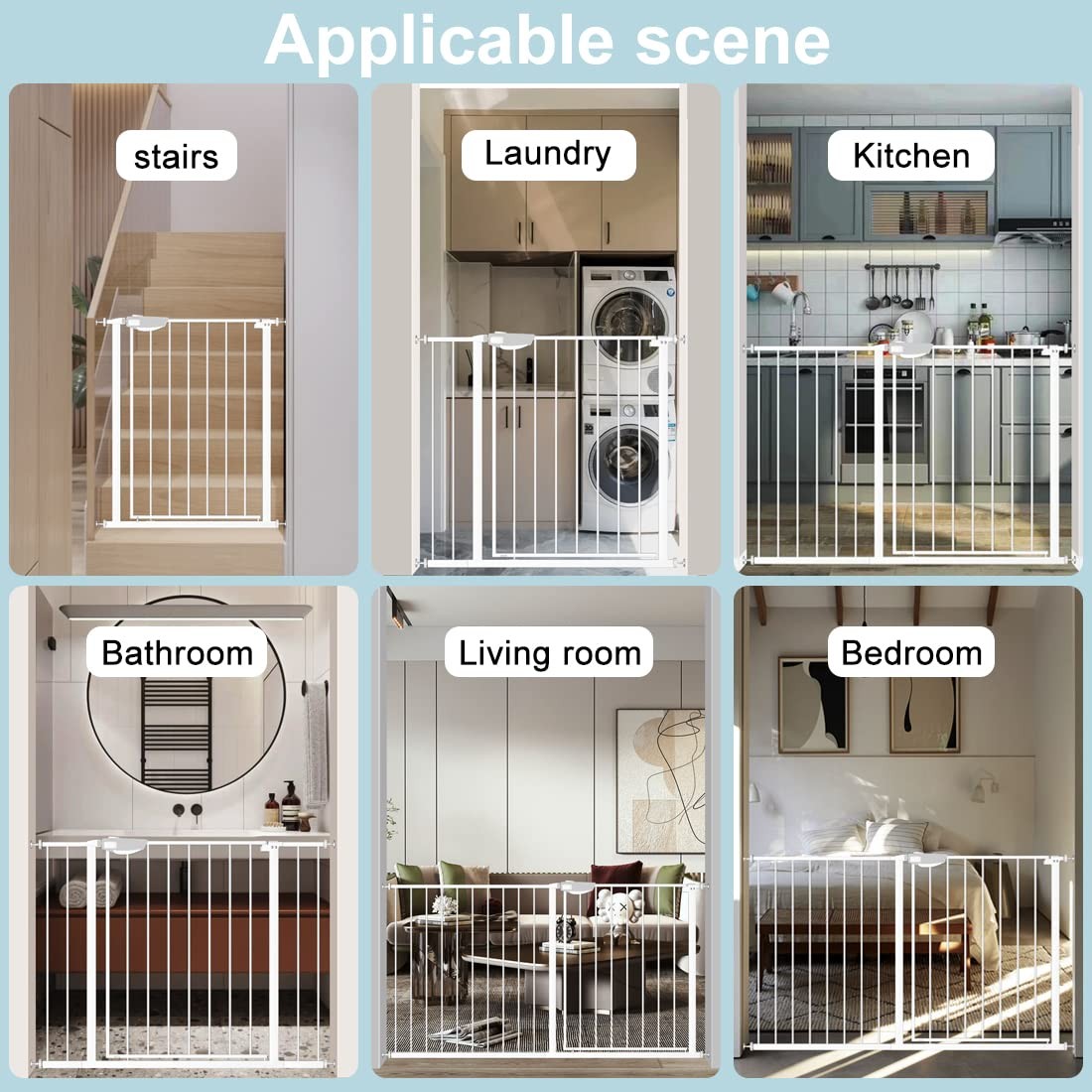 Triple Lock Baby Gate Extra Wide 57.87-62.59 Pressure Mounted Walk Through S...