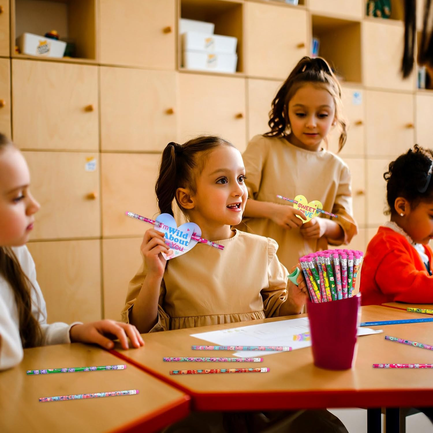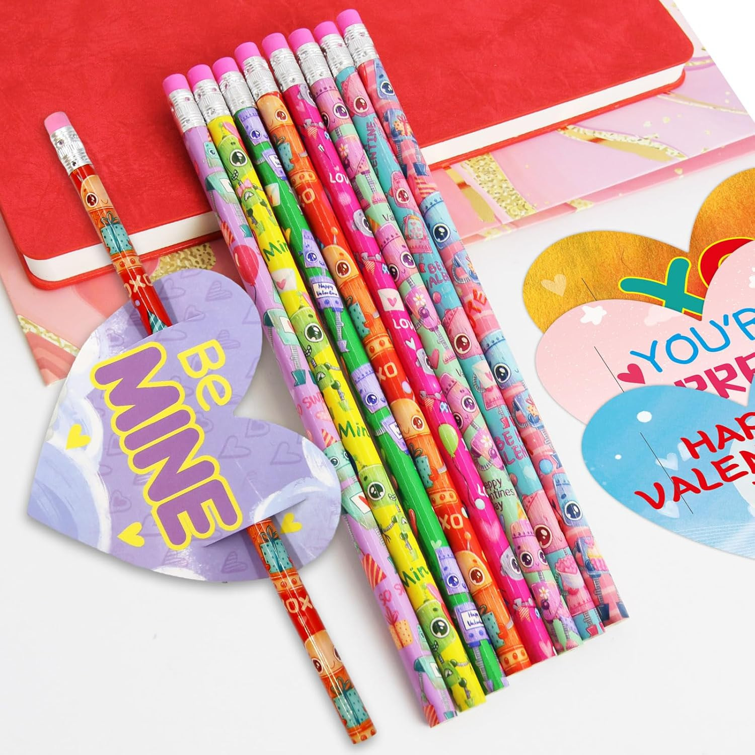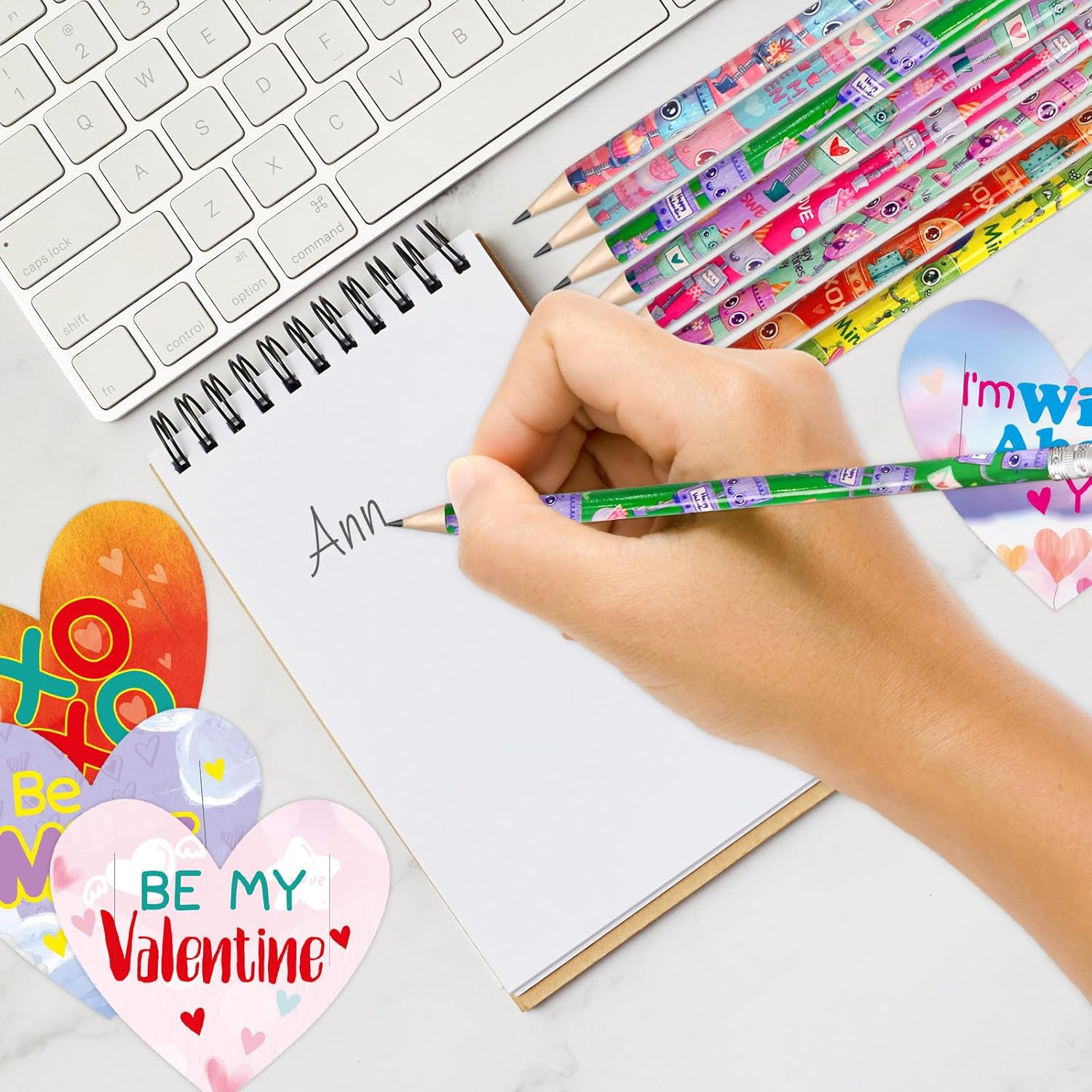 Valentines Day Pencils with Cards Kids Heart Pencils Bulk with Erasers 30 Pcs Va