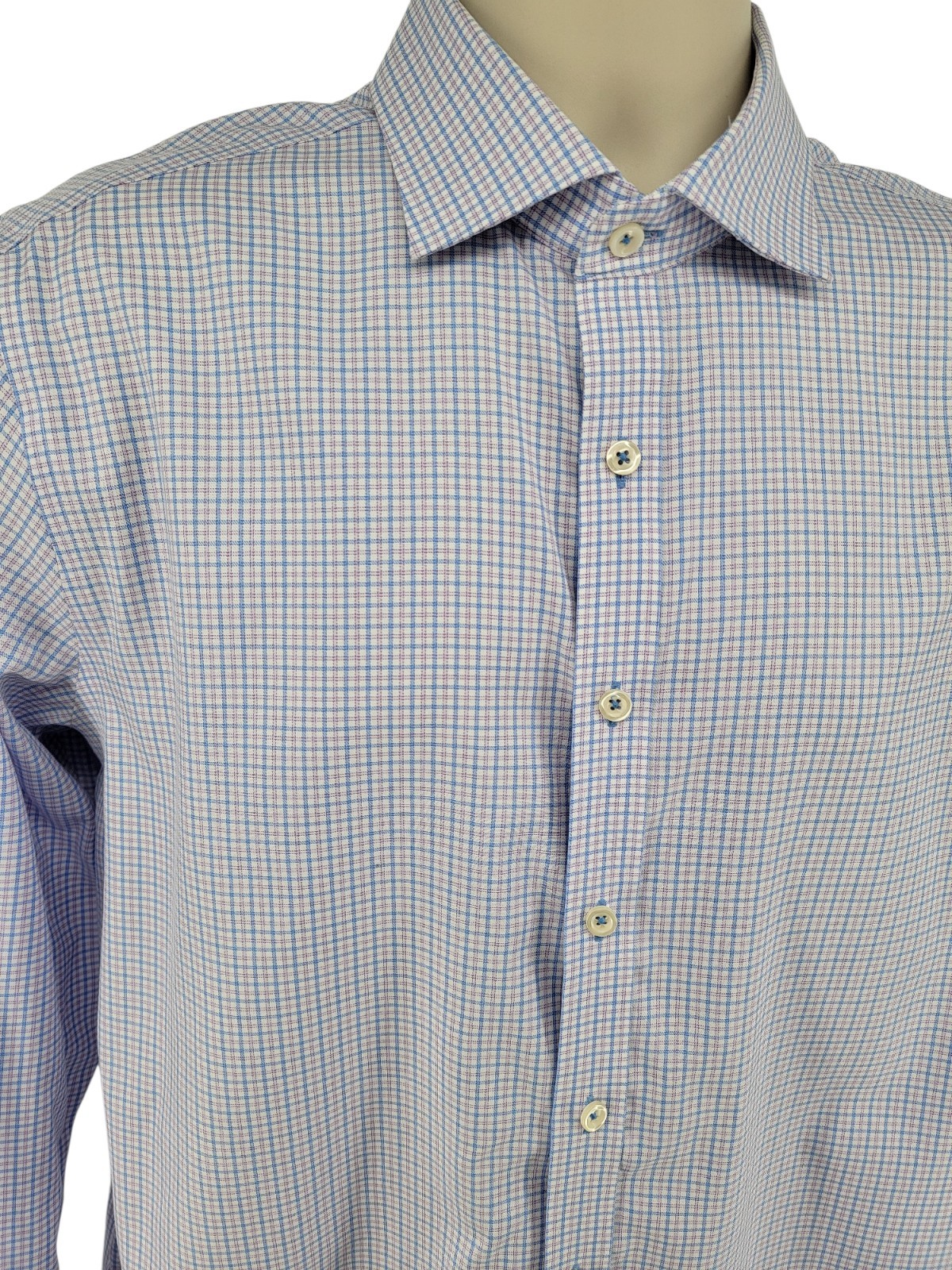 как выглядит Twillory SafeCotton Dress Shirt Mens 16.5 32/33 Tailored Fit Blue Check Non Iron фото