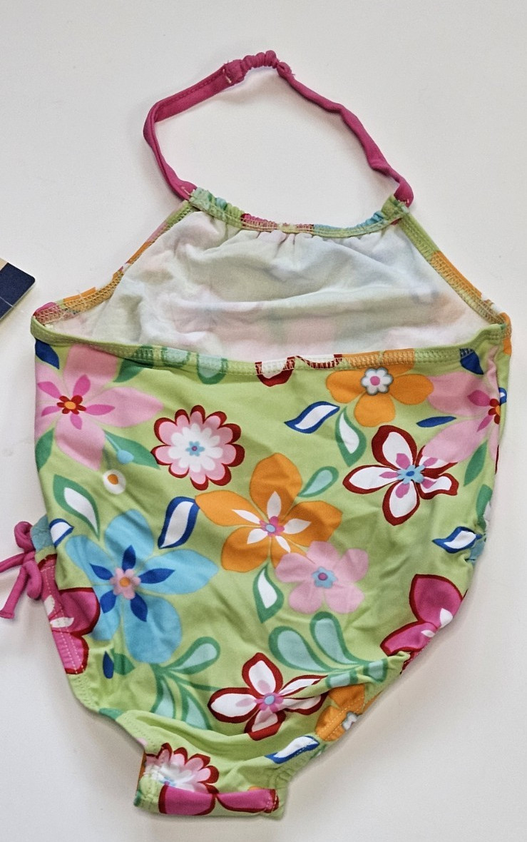как выглядит OSHKOSH Bgosh Little Girls Size 4 Green Floral Swimsuit 1 Pc Halter NWT фото