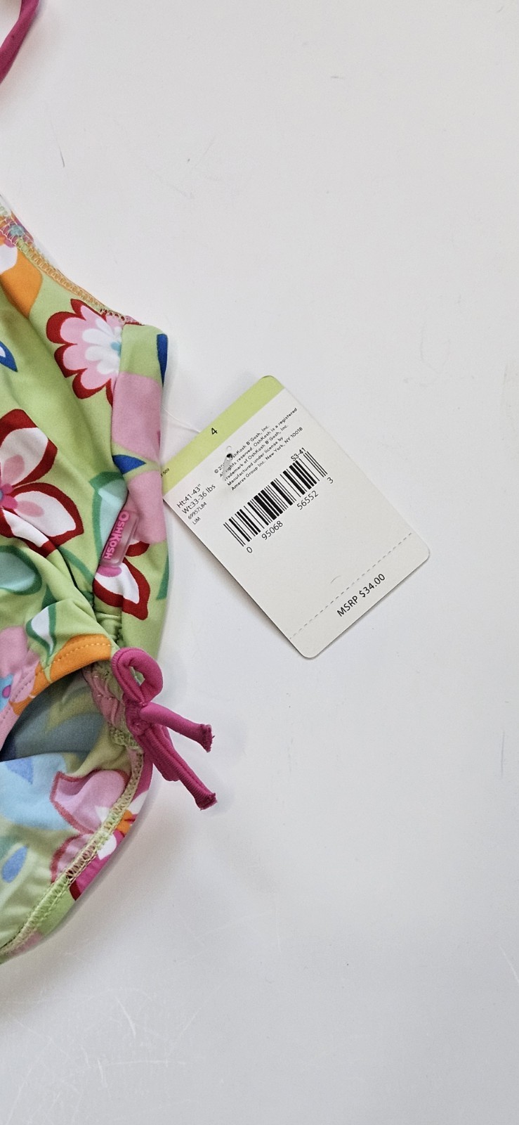 OSHKOSH B'gosh Little Girls Size 4 Green Floral Swimsuit 1 Pc Halter NWT