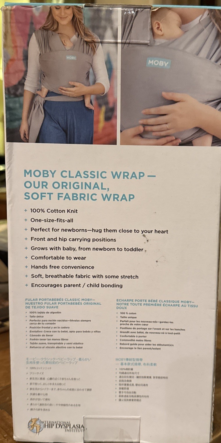 Moby Baby Wrap/Carrier, Newborn to Toddler Stone Gray Cotton