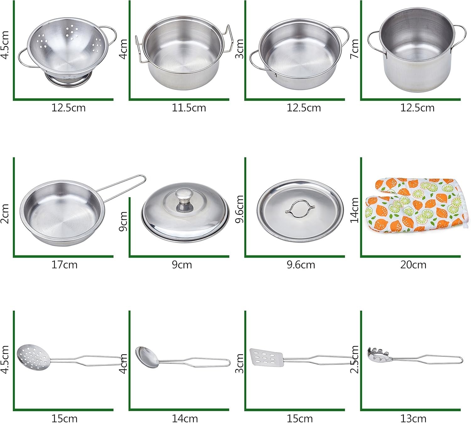 Kids Play Pots Pans Set Stainless Steel Kitchen Pretend Cookware Toys