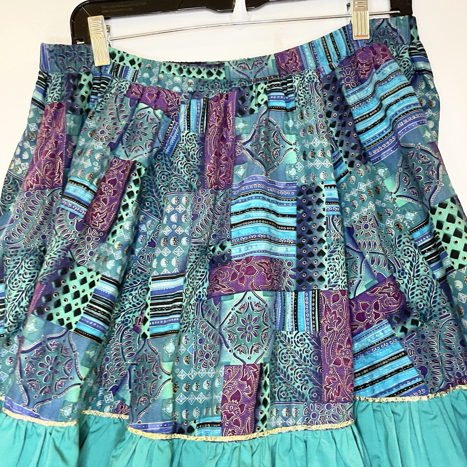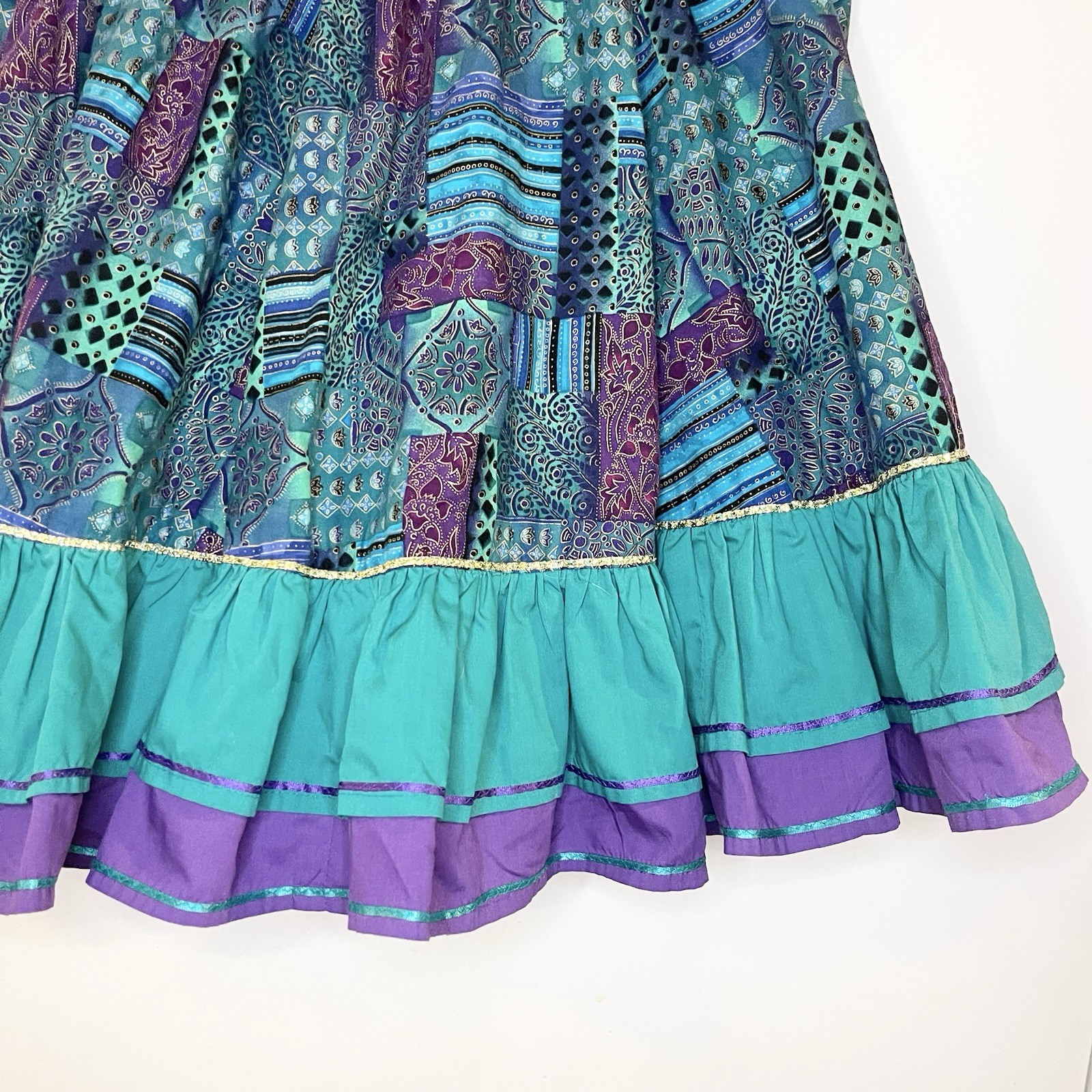 Vintage Square Dance Skirt Womens S/M Patchwork Green Purple Retro Western 90s