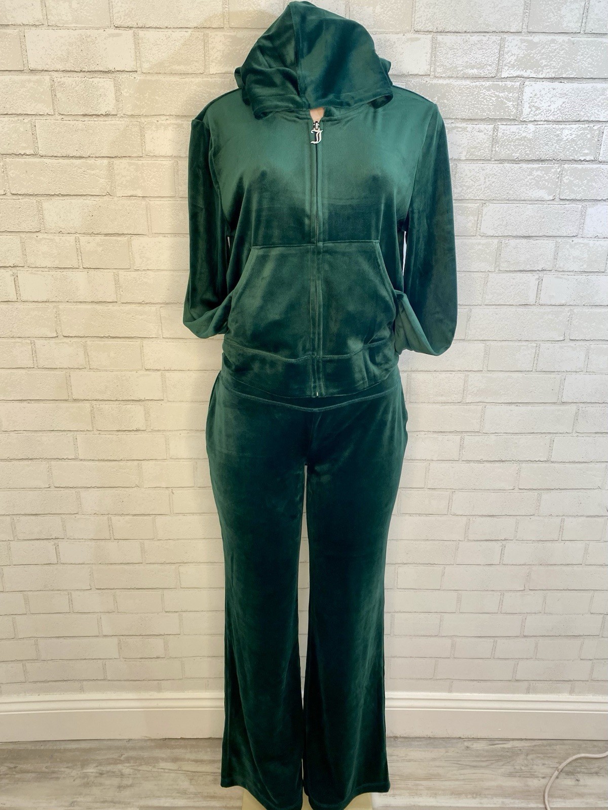 JUICY COUTURE Velour Tracksuit Hoodie Flare Pant Green St. Patty s Day Medium