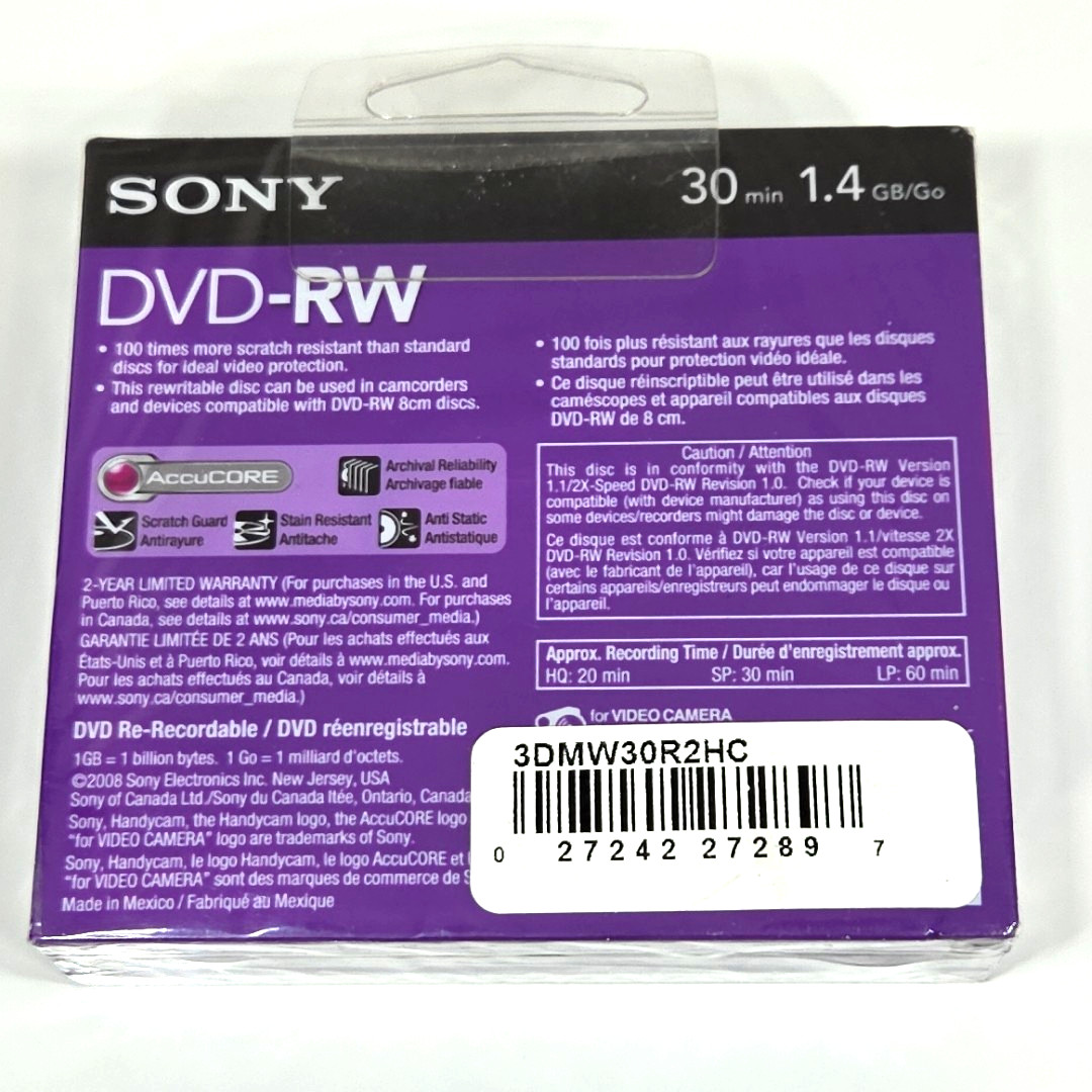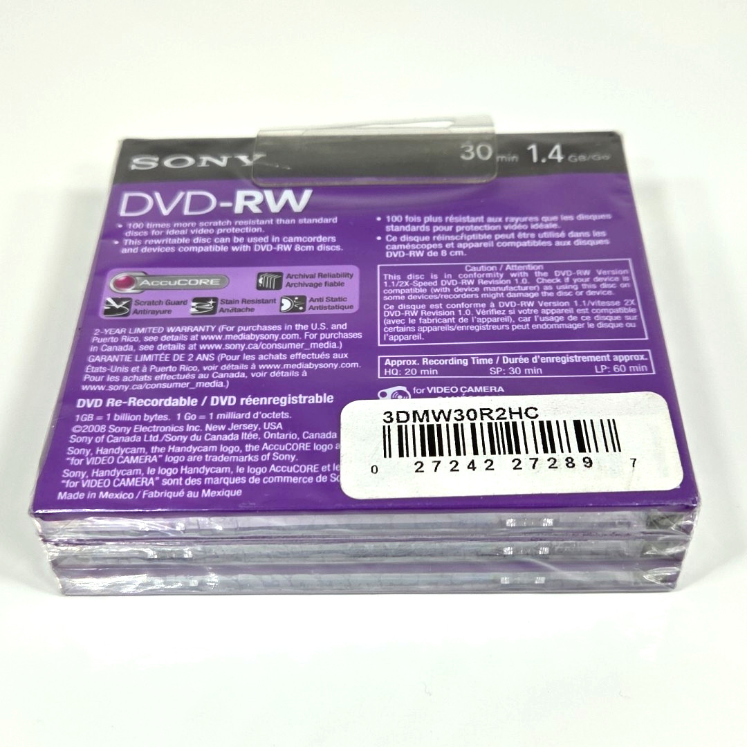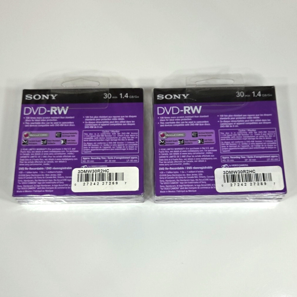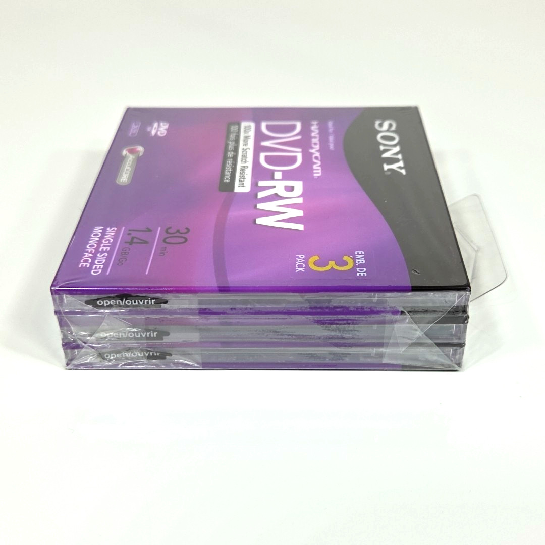 Sony Handycam DVD-RW 3-Pack 30 Min 1.4 GB Single Sided Monoface Discs Lot 2 New