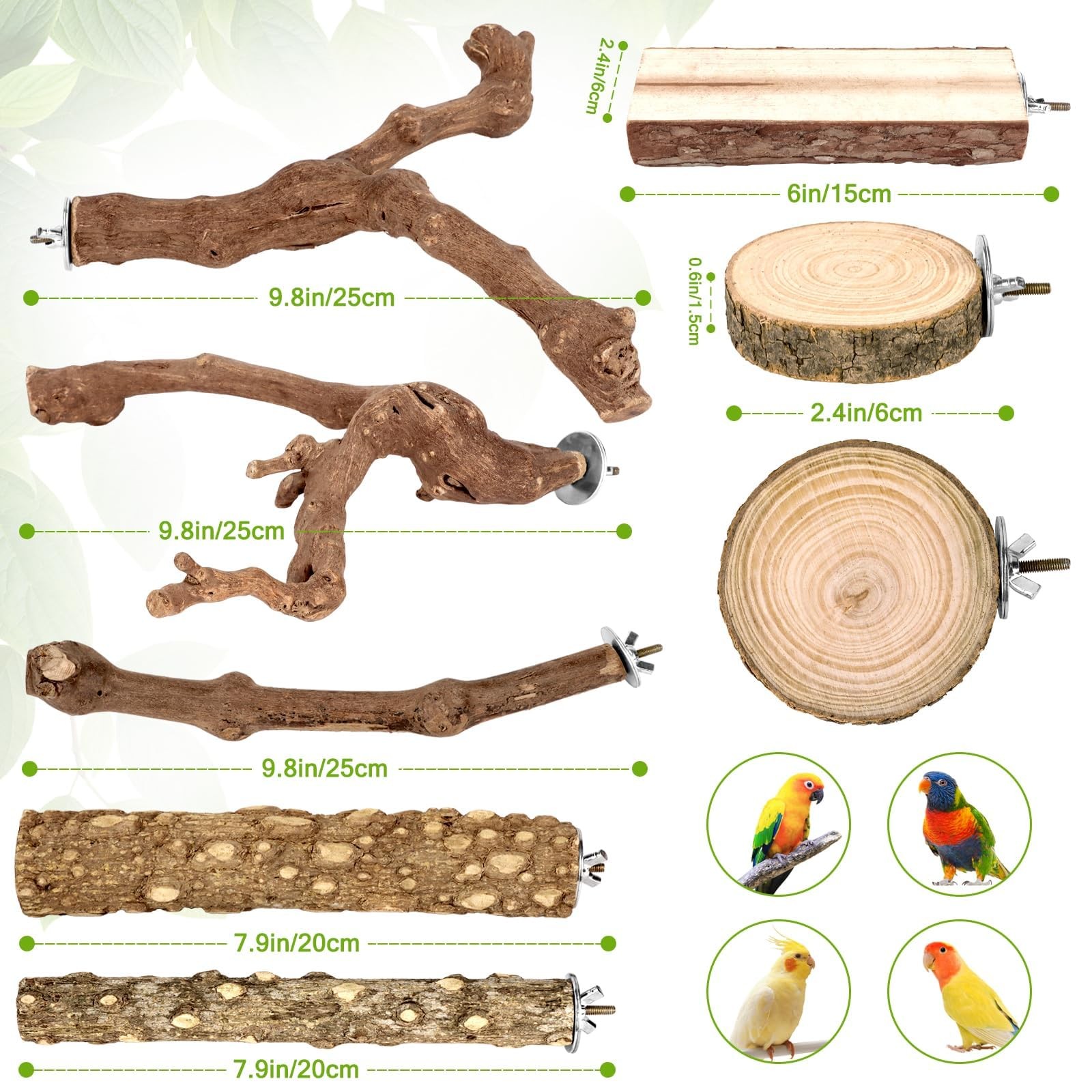 8PCS Natural Grape Wood Bird Perch Set - Parrot Cage Stand with Paw Grinding ...