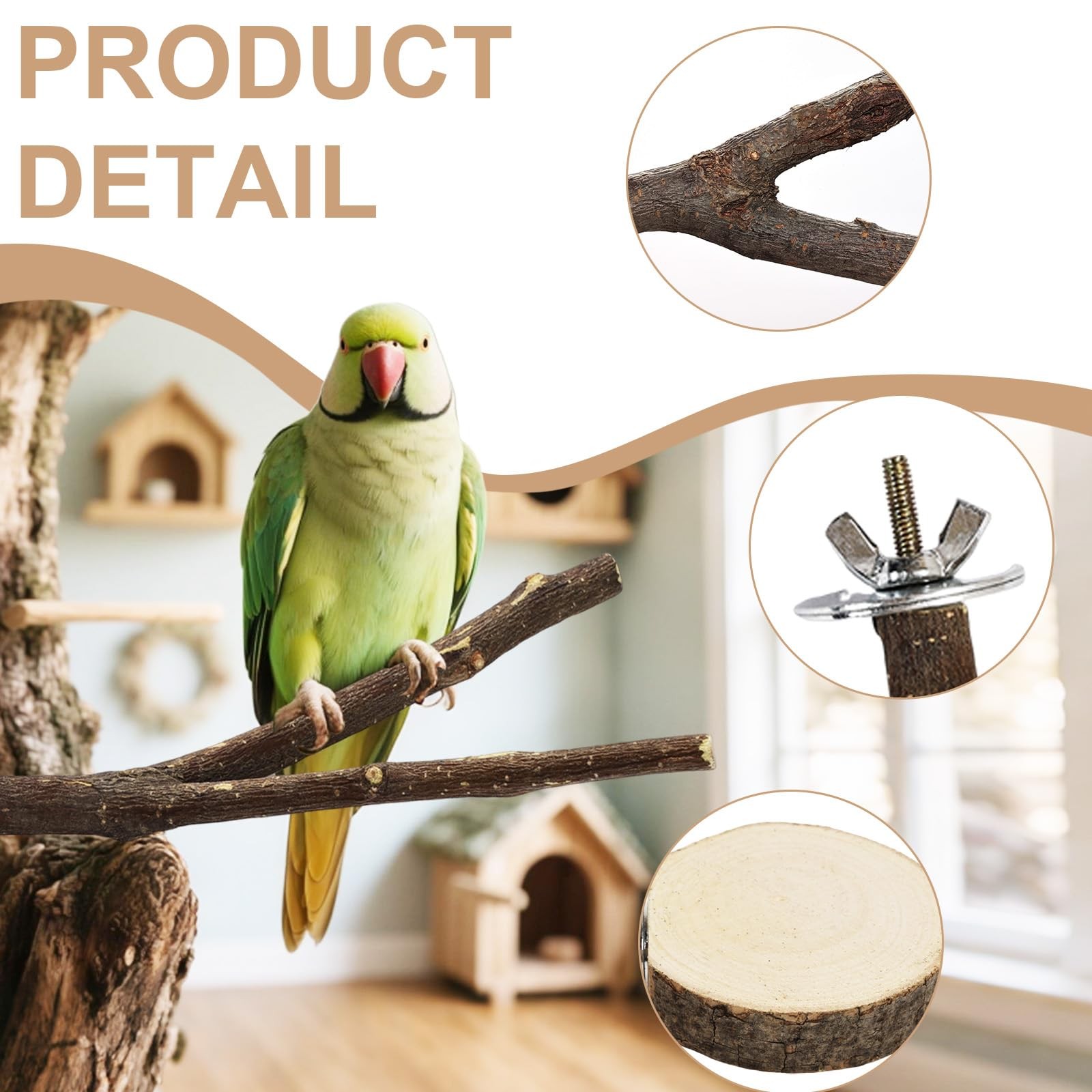 как выглядит 8PCS Bird Perch Natural Wooden Parrot Parakeet Toy Stand Branches Bird Cage A... фото