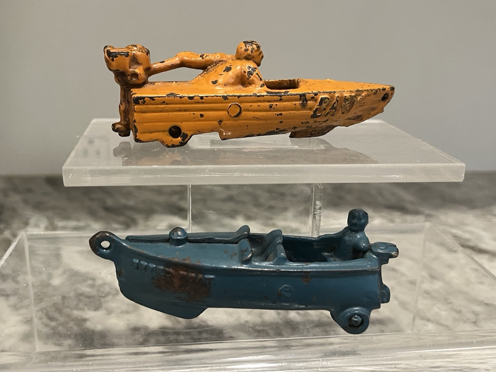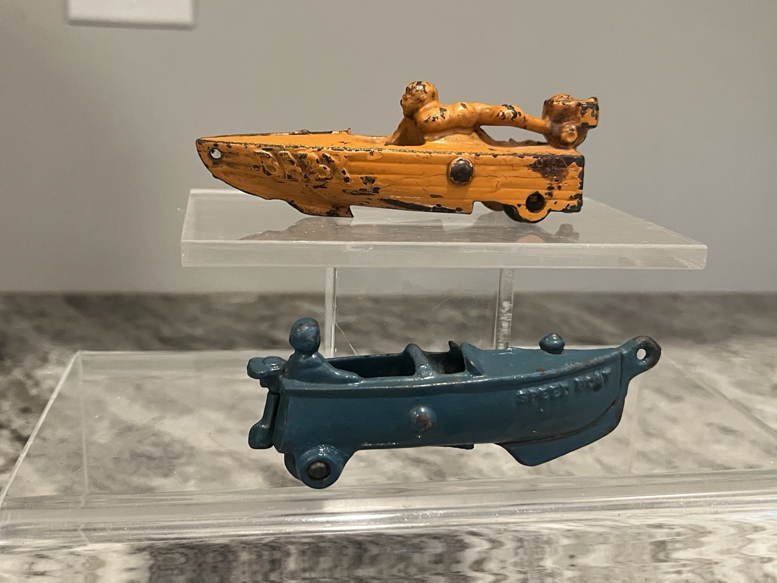 Vtg 1930 s Pair Of Hubley Cast Iron Speed Boat Baby Boat Original Cast Iron
