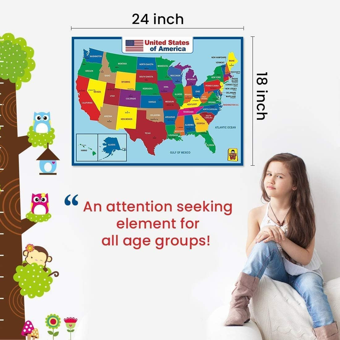 как выглядит United State Map Laminated Poster -Double Side Educational Poster for Kids/Adult фото