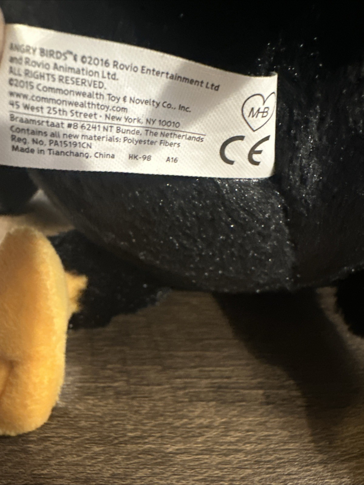 2016 Angry Birds Plush Movie Rovio Bomb Black Bird Plush w/ No Sound A2