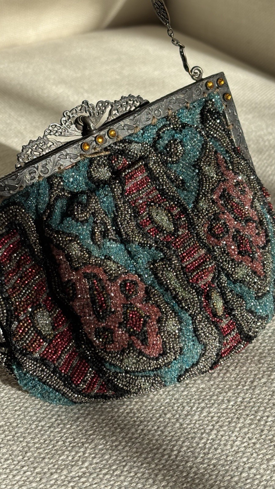 как выглядит Walborg Multi Color Beaded Evening Purse Handmade In Belgium Antique 1930s фото