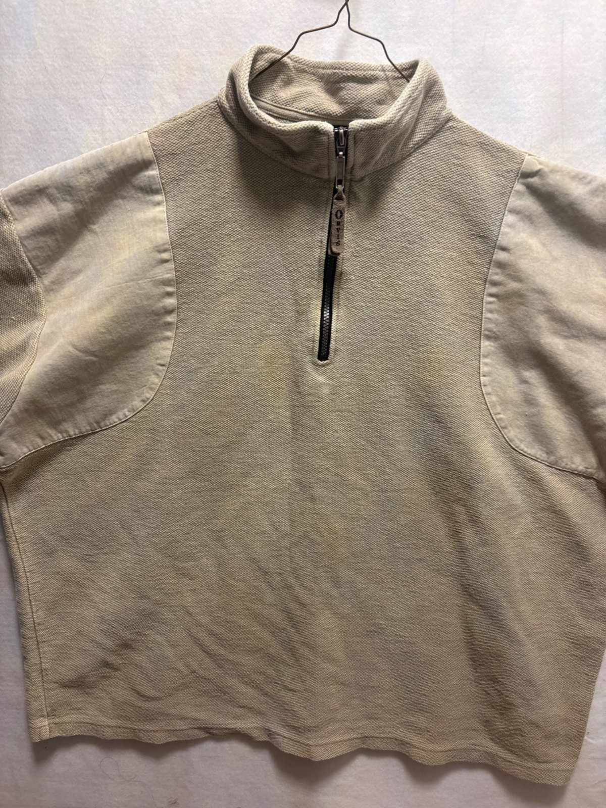 как выглядит Orvis XXL Beige Pullover Quarter-Zip Sweater With Textured Fabric фото