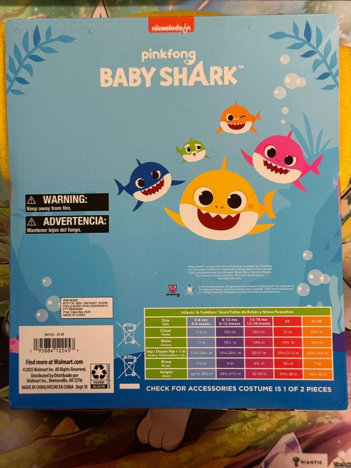 Baby Shark Toddler Halloween Costume w/ Sound Box Size 3T-4T Outfit Cosplay New