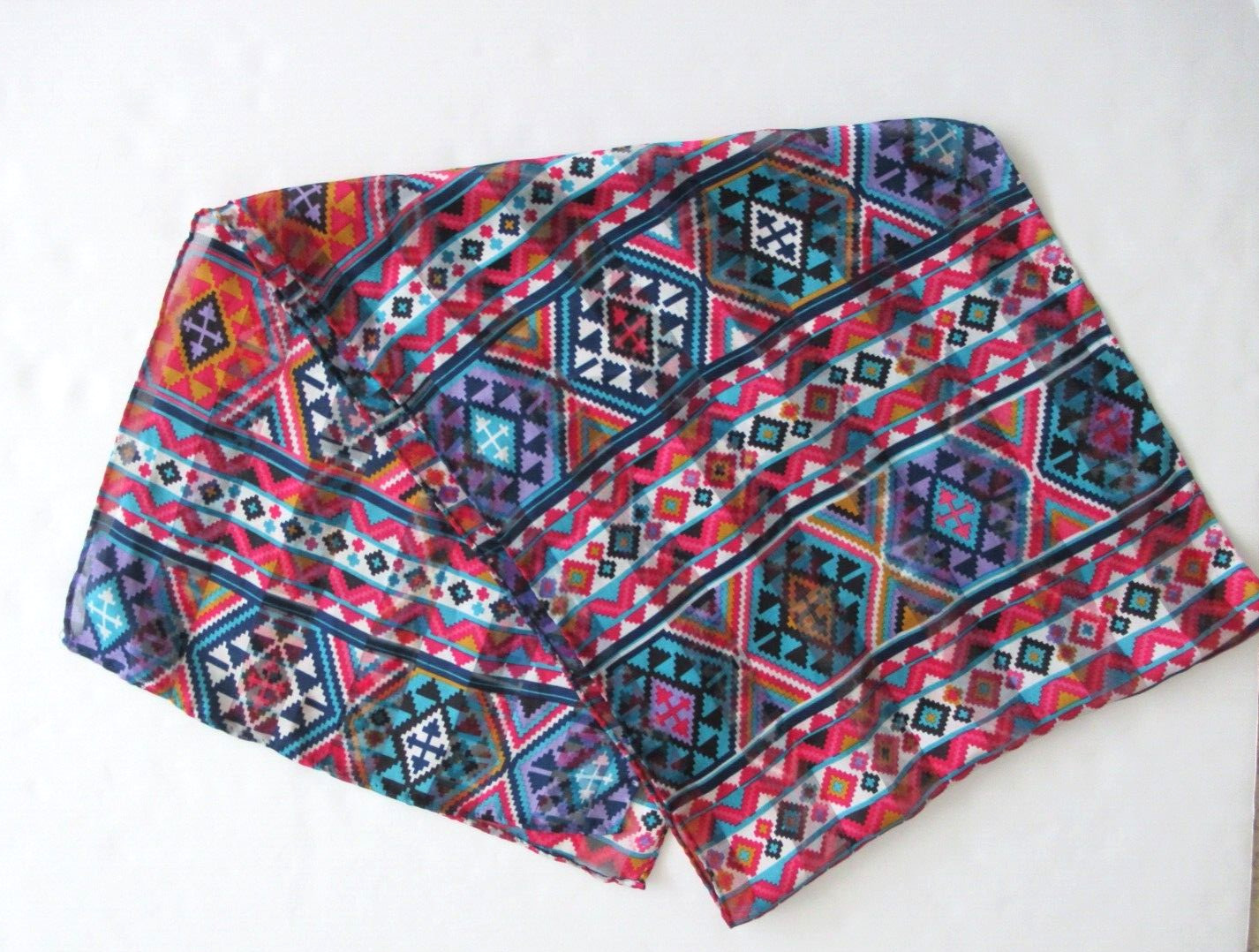 Southwestern Print Scarf Rectangular 58 x 13 Multicolor, Hand Rolled Hem NWOT