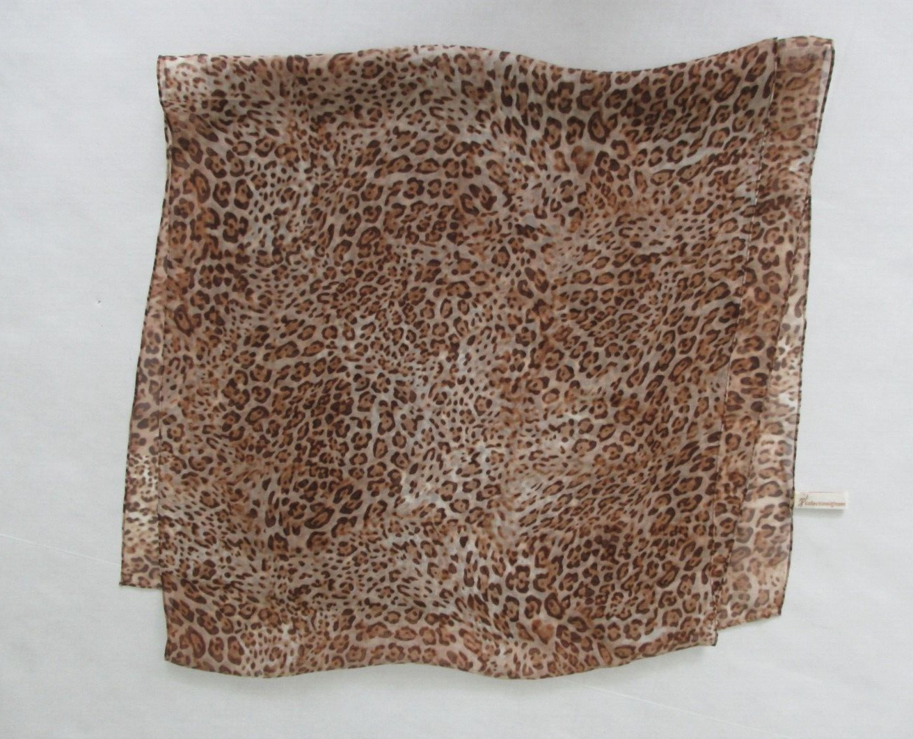 100 Silk Animal Print Scarf Rectangular Sheer Scarf 70 x 17 Brown NWOT