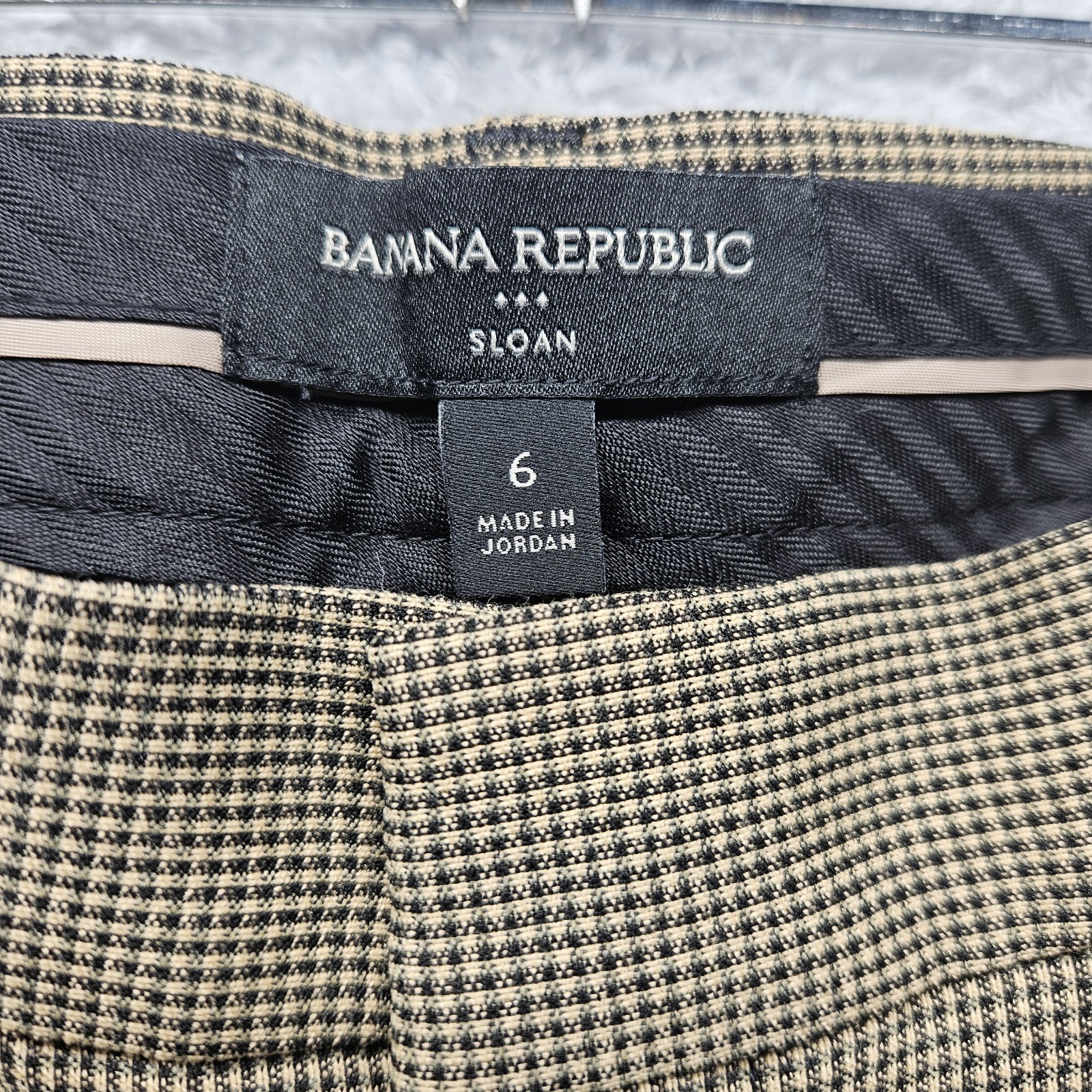 как выглядит Banana Republic Sloan Womens Tan Micro Plaid Pants Size 6 Office Straight Leg фото