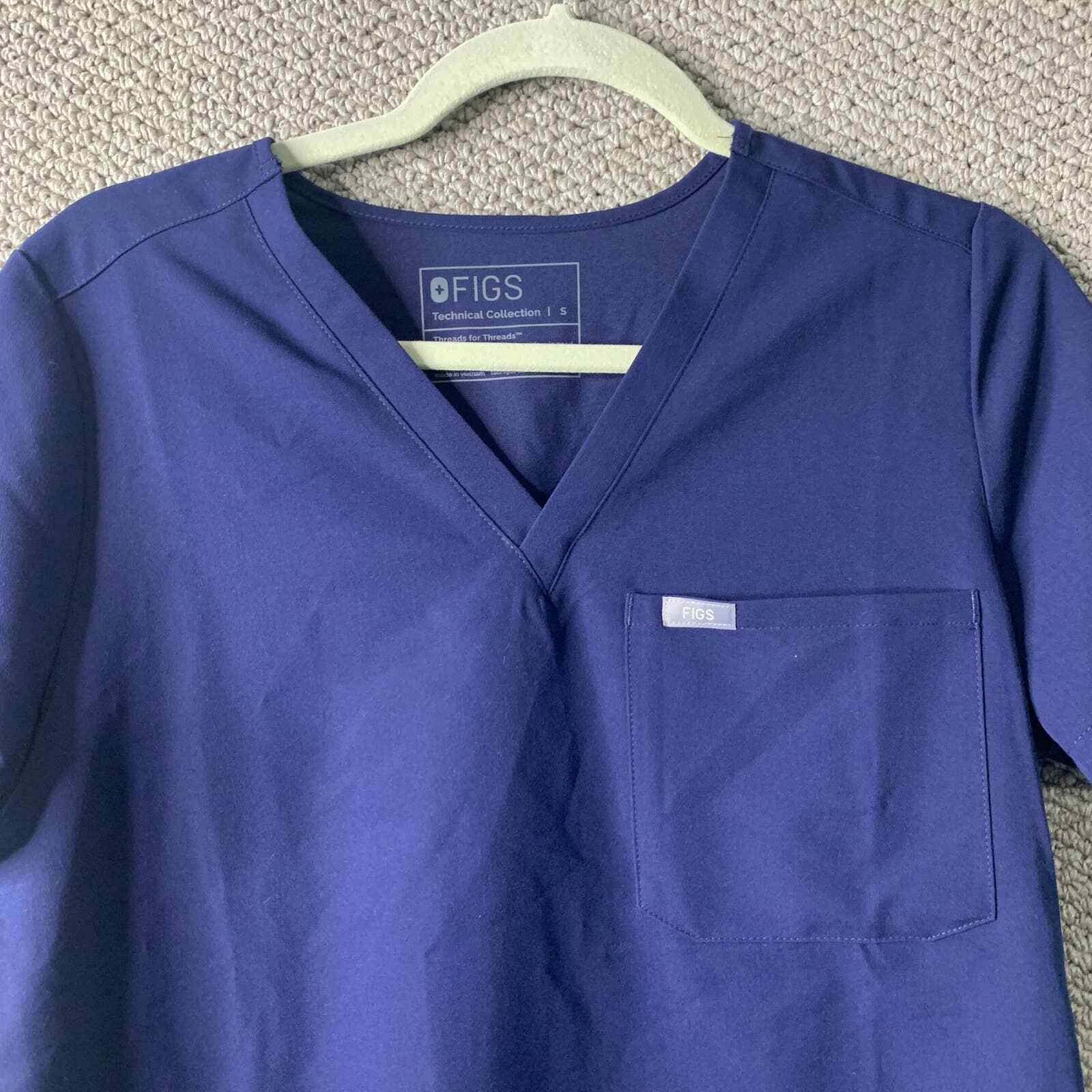 как выглядит FIGS Womens Scrub Top Size Small Blue Catarin One-Pocket Short Sleeves V-Neck фото