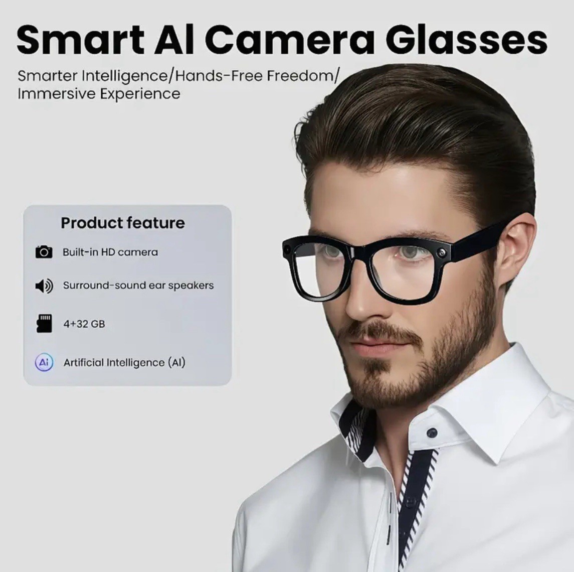 AI Smart Glasses with Camera, 1080P HD Video Recording Glasses, AI Translator