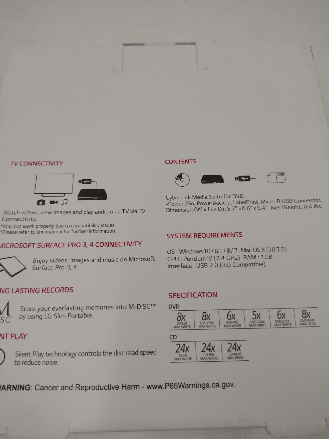 LG Ultra Slim Portable DVD Writer SP80NB80 New