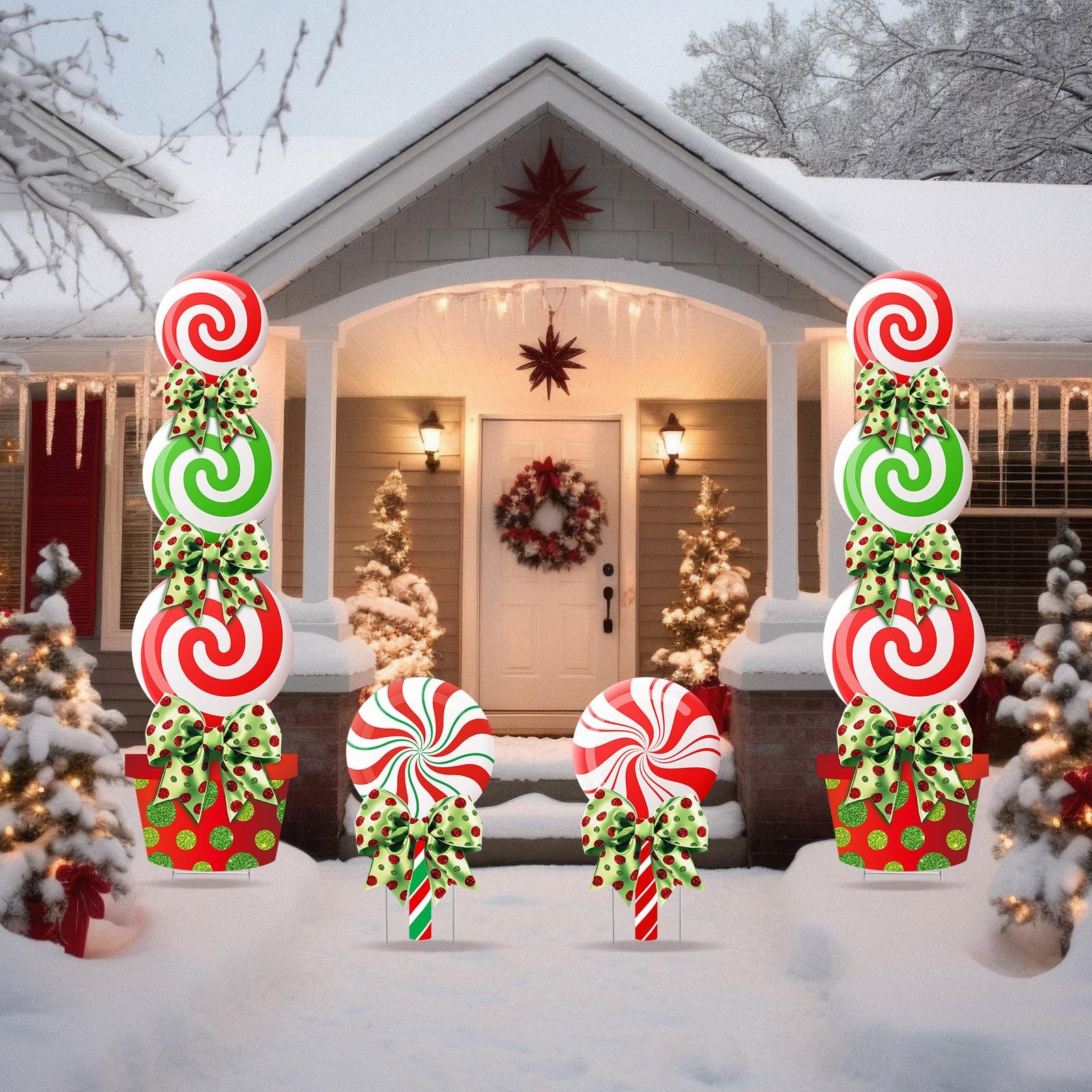 Meonum 4 Pcs Peppermint Candy Christmas Decorations Outdoor Large Red