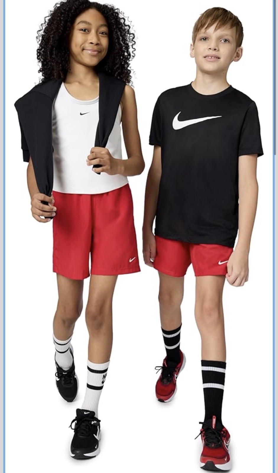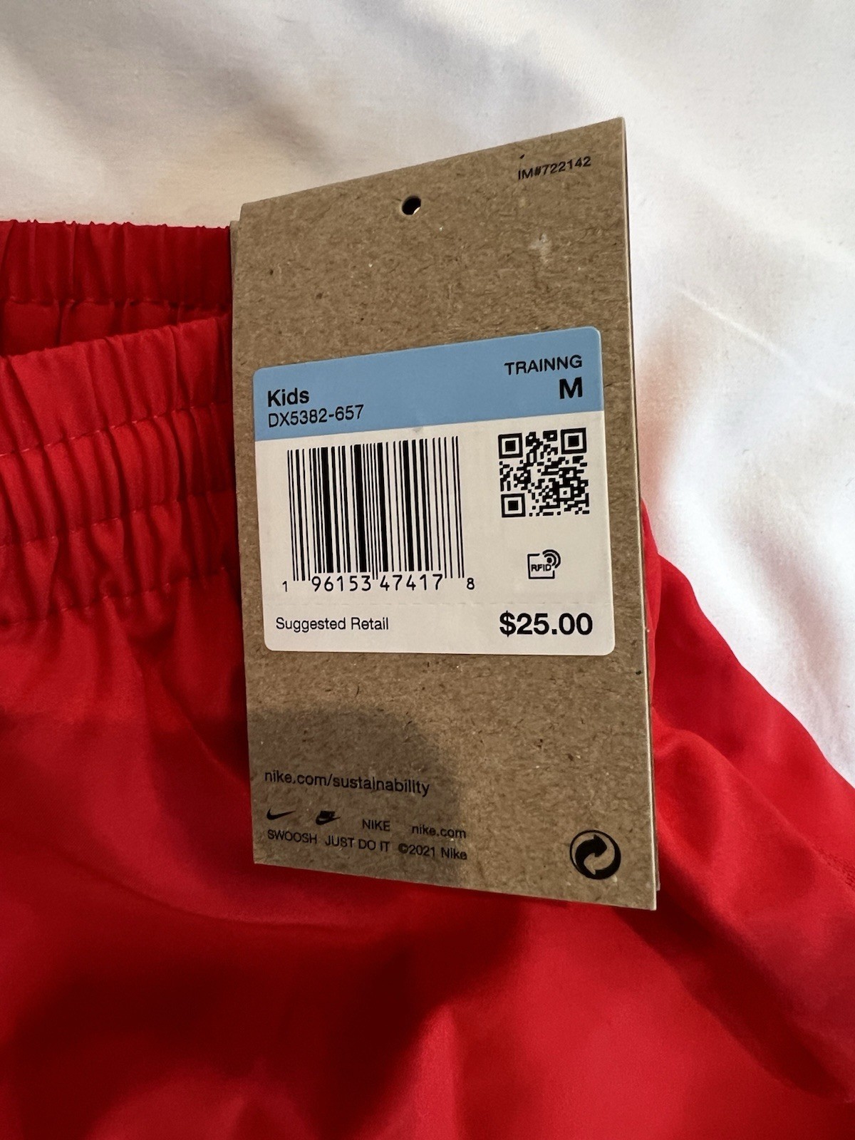 как выглядит Nike Unisex-Child Multi Standard-fit Training Shorts Red Size M NWT Logo Print фото