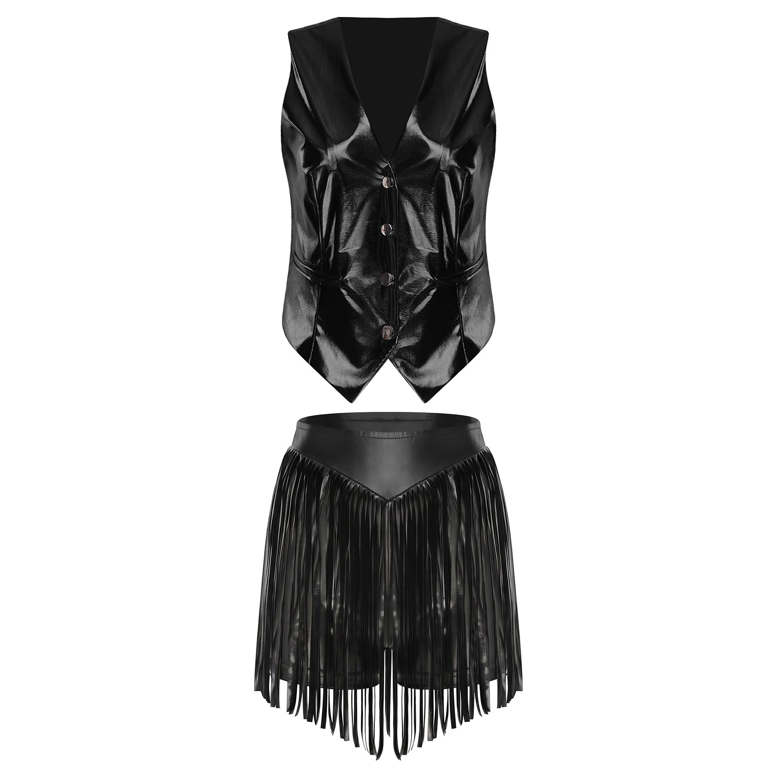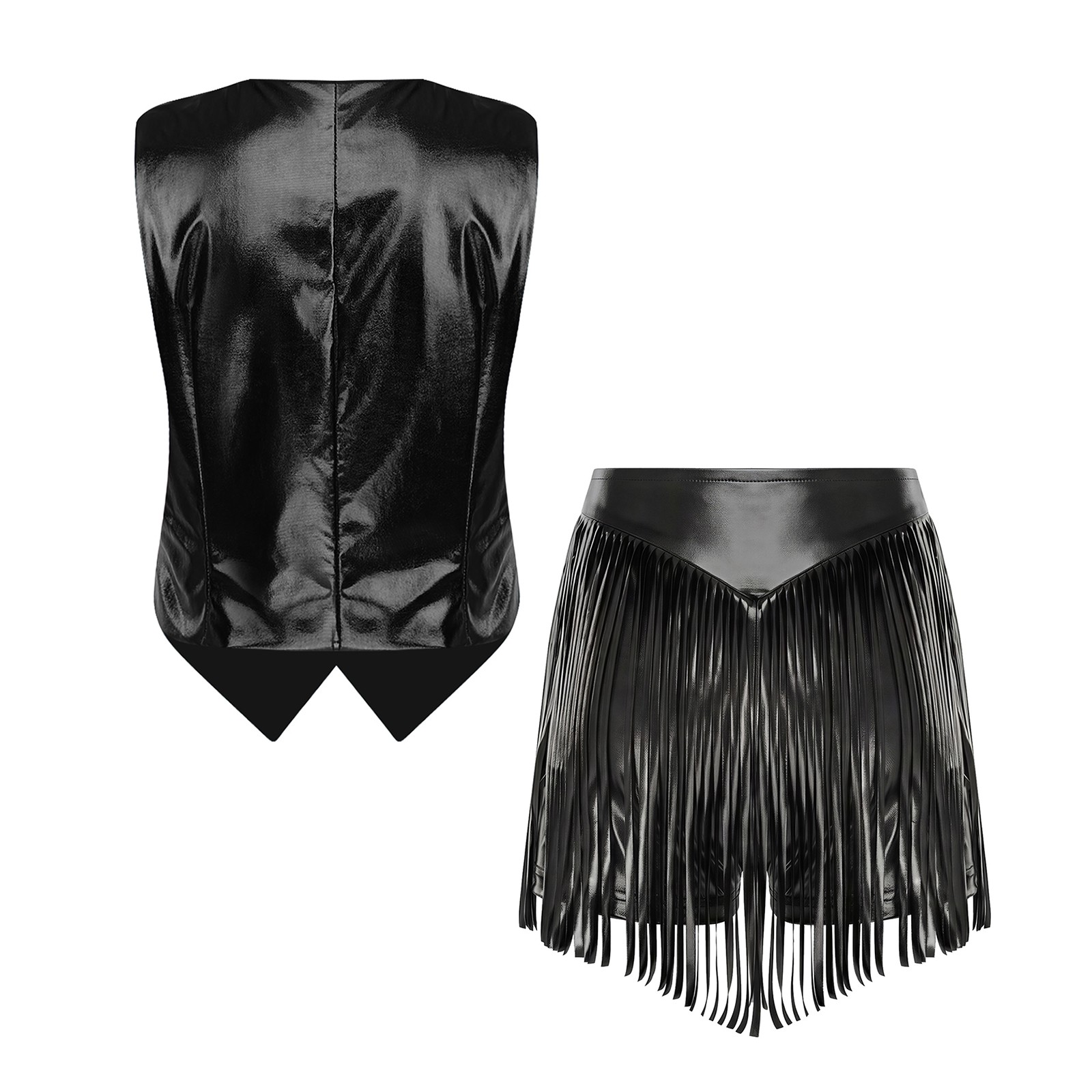 Womens Dancewear Iridescent Outfits Stage Costume Street Wear Two Piece V Neck
