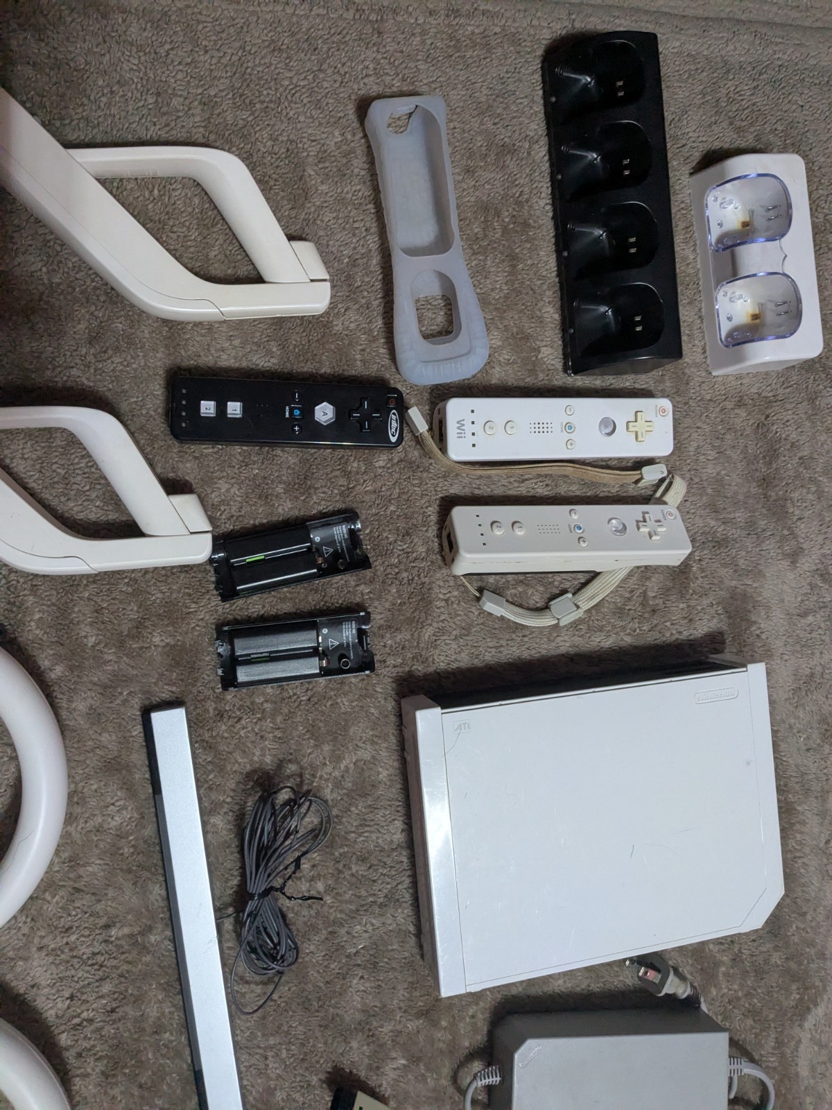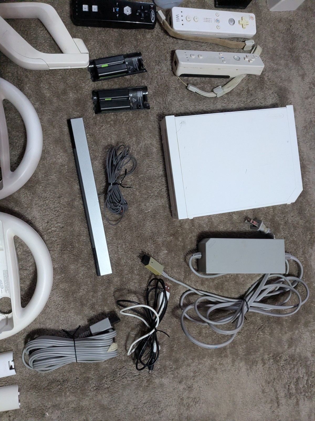 Huge Nintendo Wii Mario Kart Console Bundle - 2 Wheels 3 Controllers MUCH MORE