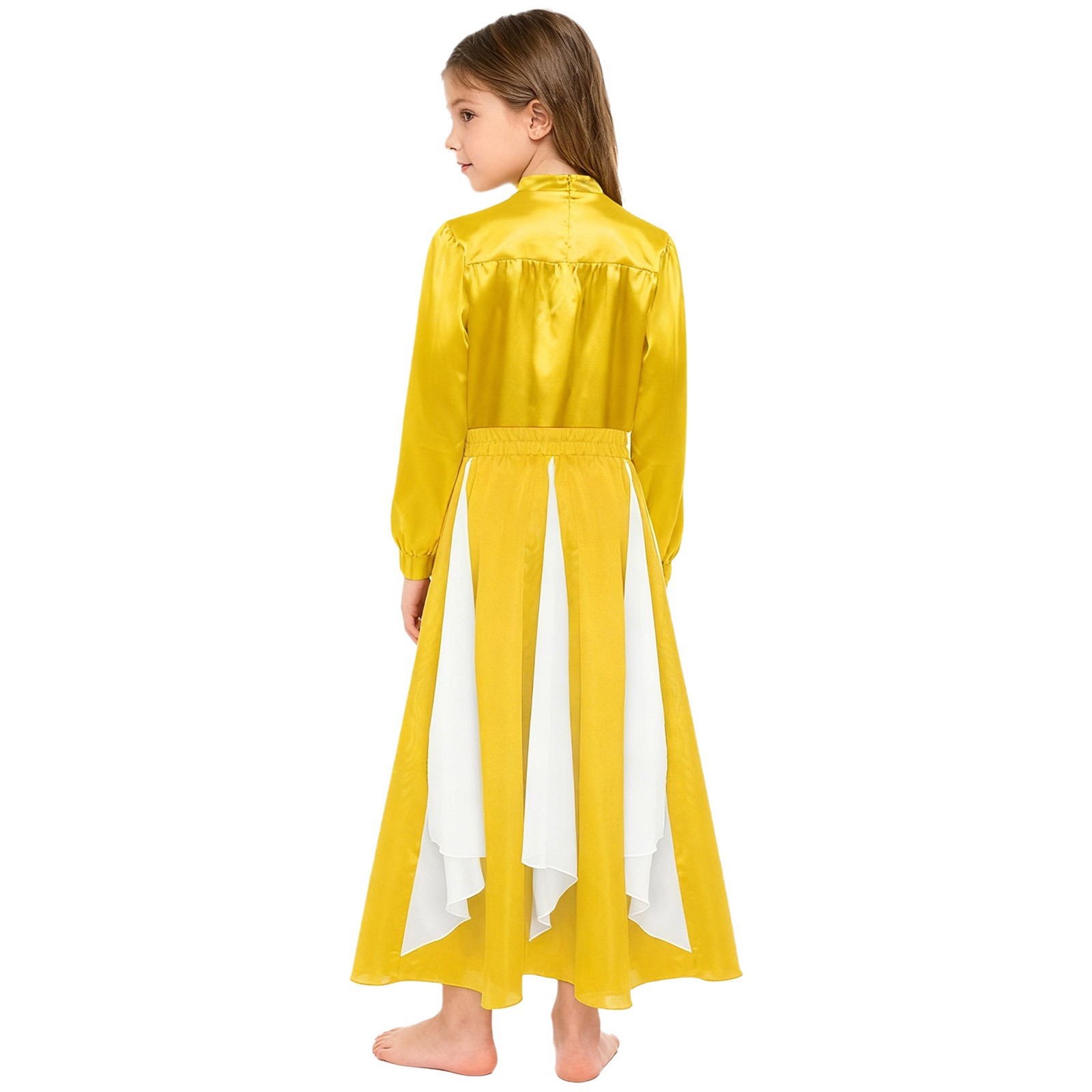 Girls Costume Wide Hemline Outfit Praise Set Top Back Invisible Zipper Ceremony