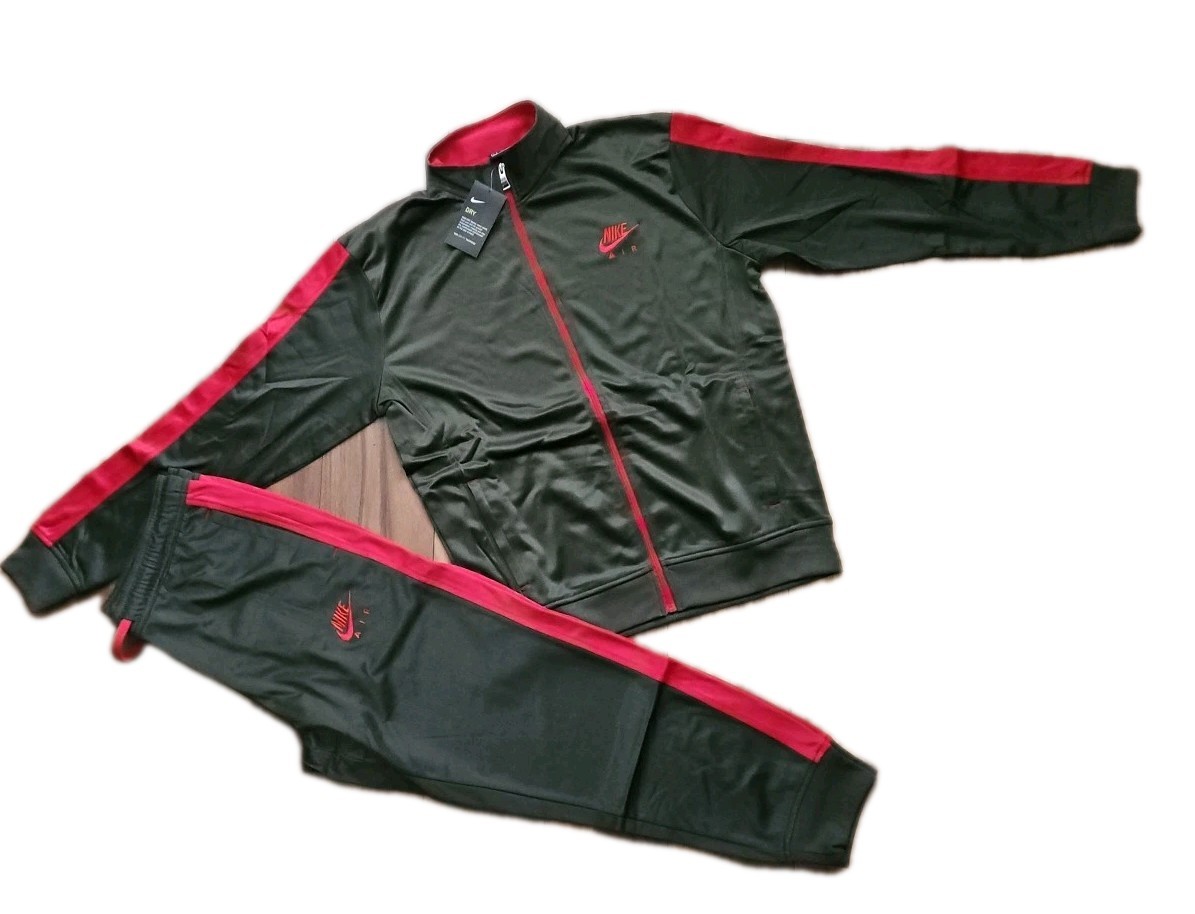 Nike Track Suit Mens Full Zip Jacket Pants Zip Pockets Olive/Red Large. New
