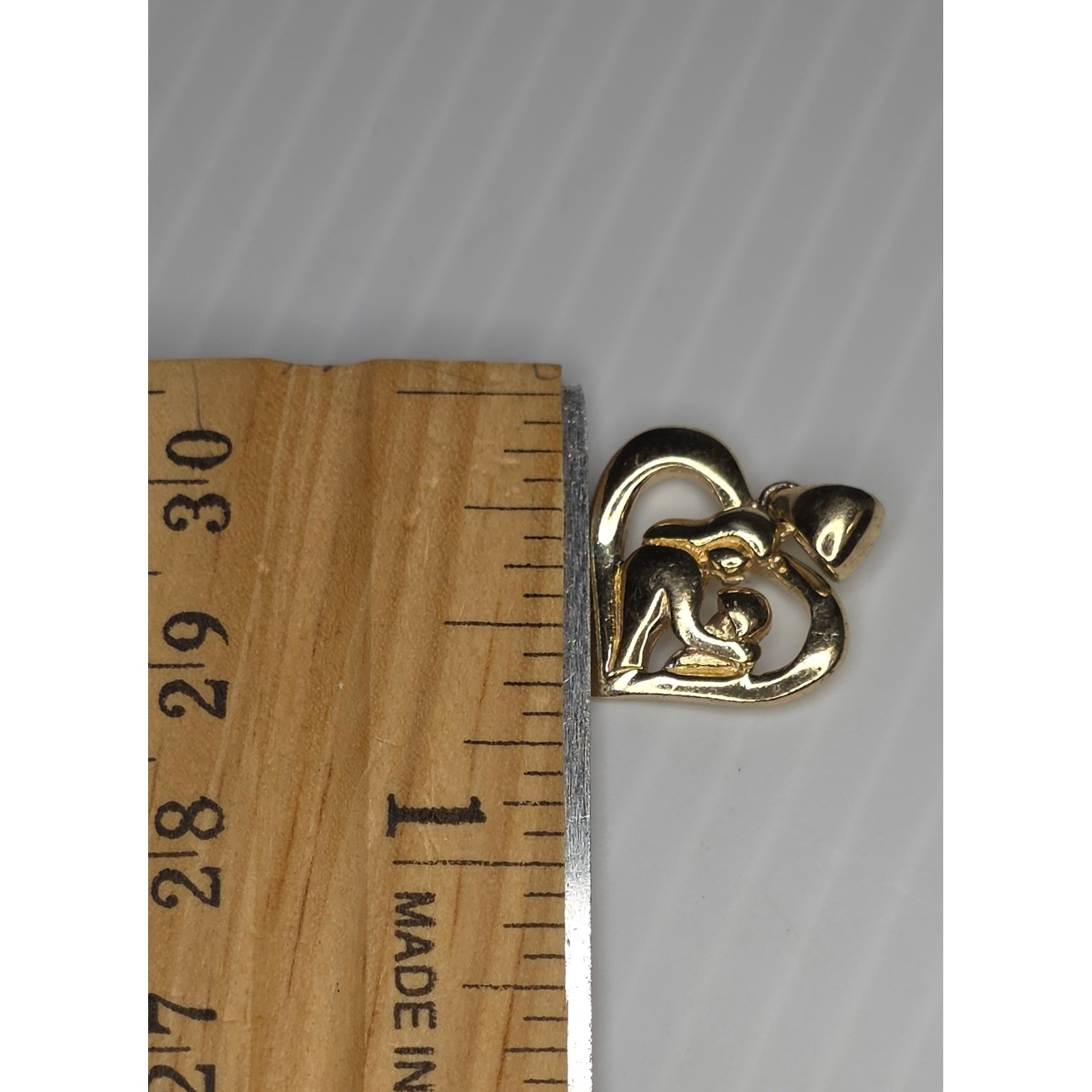 как выглядит Gold Tone Over 925 Sterling Mother Child Heart Pendant Small фото