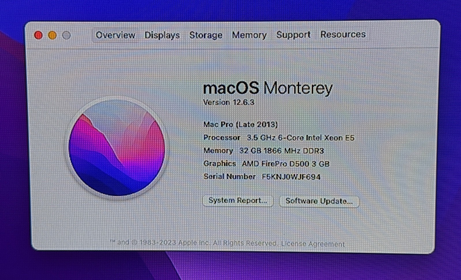 Apple A1481 Mac Pro 6-Core 3.5GHz Xeon E5 32GB AMD FirePro D500 3GB 500GB SSD