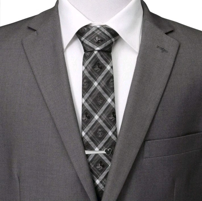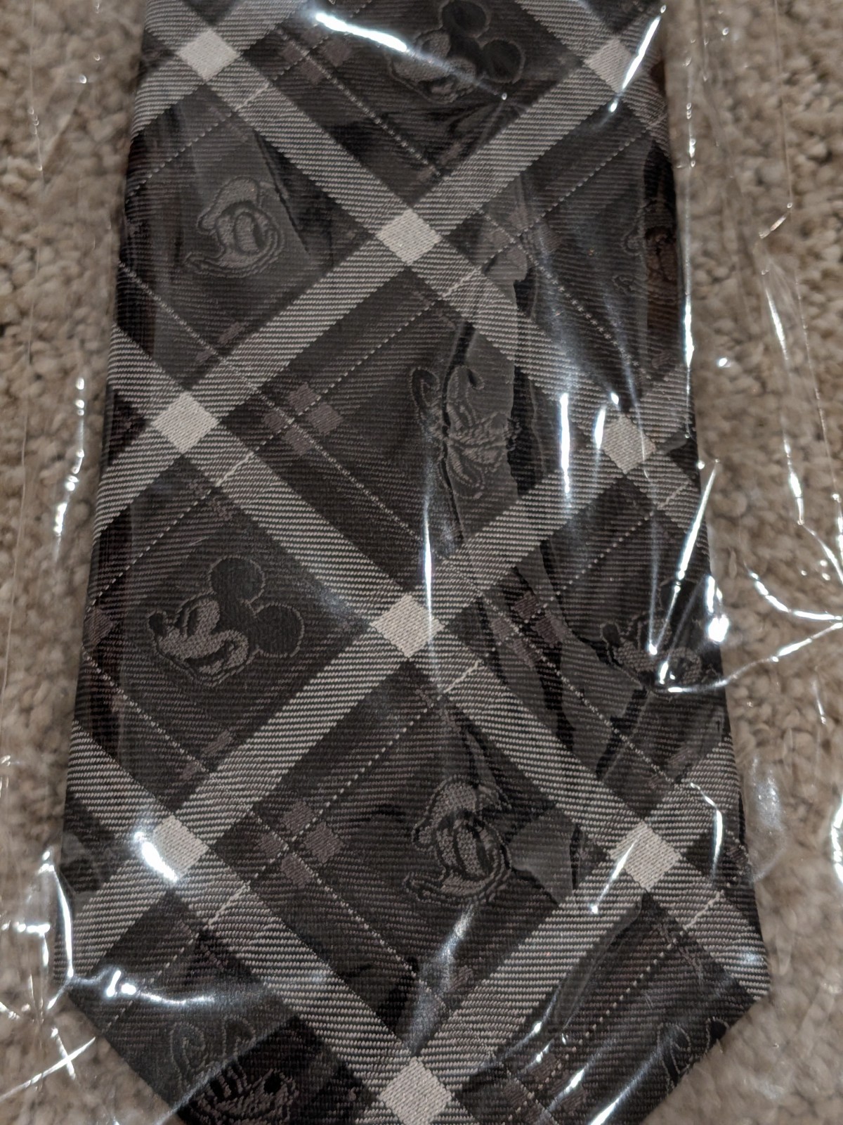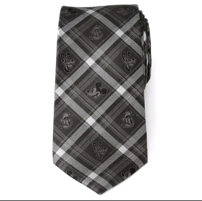 как выглядит Disney Mickey and Friends Charcoal Plaid Mens Silk Tie Grayscale Donald Pluto фото